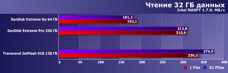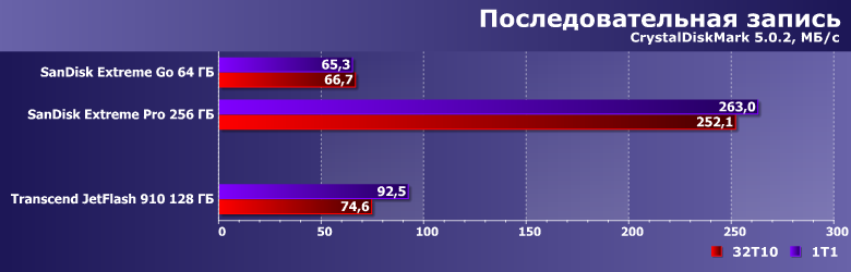 Примерный паритет с Extreme Pro USB 3.1 при работе в один поток — а в многопоточном режиме чистая победа. Сравнивать с основной массой флэшек тем более нечего.