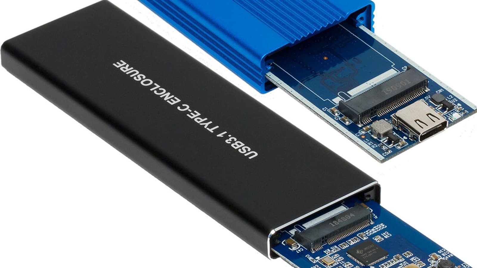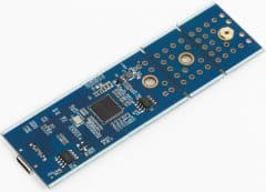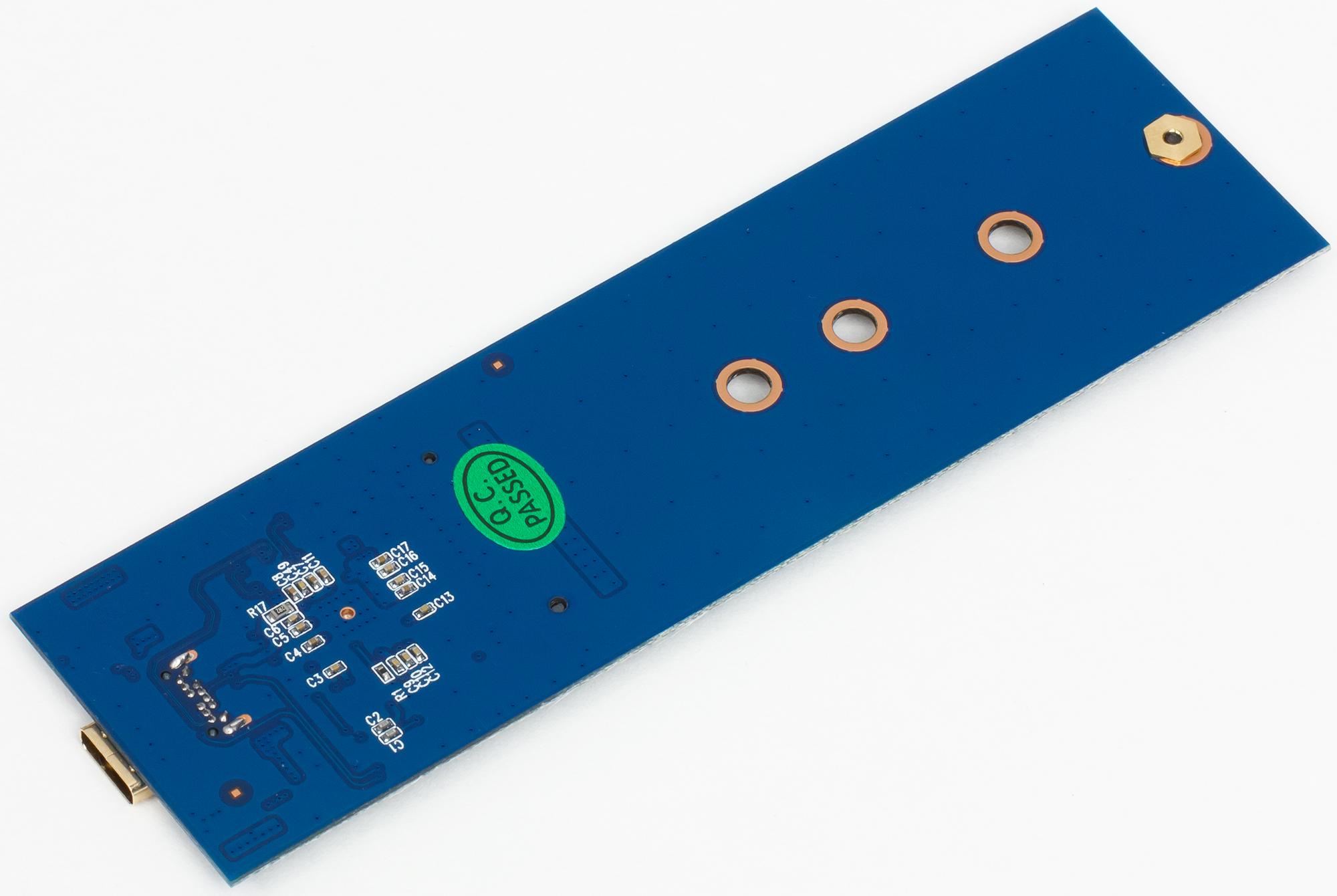 Вскрытие показало, что связано это с разной конструкцией основной платы: в первом случае контроллер стоит между разъемами USB и M.2, а во втором — на обратной стороне платы. В любом случае это, конечно, куда компактнее внешних винчестеров, однако несколько пугает на фоне того же Samsung T5. В первую очередь из-за того, что карты M.2 могут быть длинными — до 80 мм (даже до 110, но этот вариант достаточно экзотичен), причем именно на такие и приходятся основные объемы продаж, так что производителям пришлось озаботиться поддержкой всех вариантов. Вот если ориентироваться на продажи готовых изделий, тут, пожалуй, есть смысл «заточиться» под Toshiba BG3 с его габаритами 22×30 мм :) С другой стороны, корпуса под SATA M.2 на данный момент обычно тоже «страдают» той же универсальностью, что приводит и к аналогичным солидным габаритам, но в этом случае есть какое-никакое предложение для карт формата 2242 (без более крупных). Под PCIe — нет.