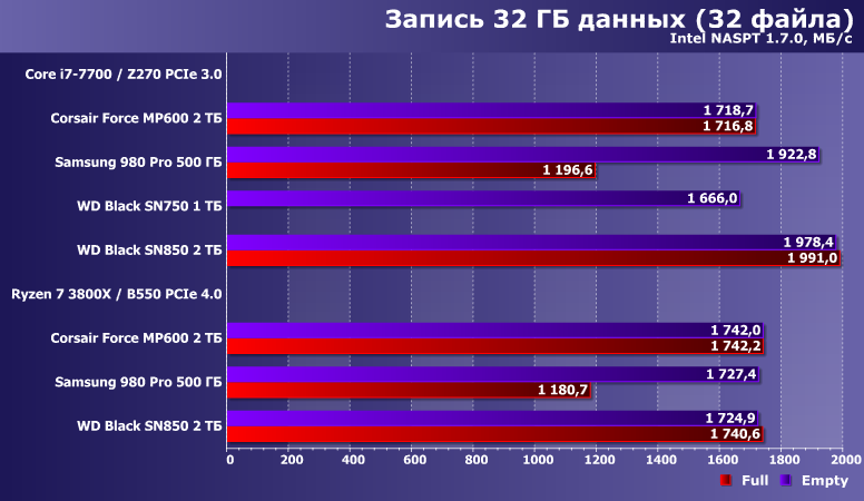 Мы решили постепенно «переводить» тесты на заполненных данными накопителях (т. е. когда свободного места остается лишь порядка 100 ГБ) в разряд обязательных, что приводит к необходимости небольшого изменения формата представления результатов. Делая их, скажем так, более показательными. Для всех накопителей, которые и тестировались в двух состояниях, конечно, но со временем эта проблема отпадет естественным образом.