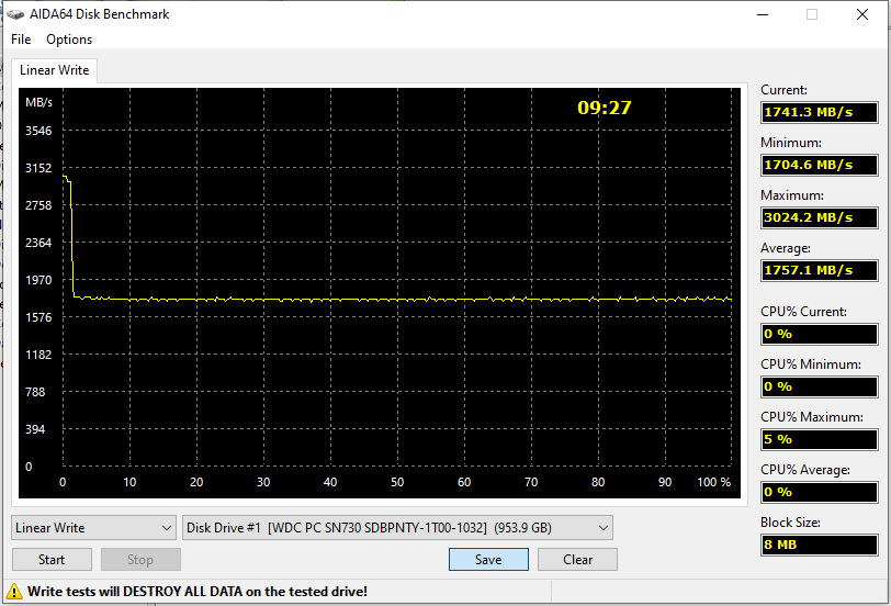 Да и от состояния последнего, работы TRIM, наличия пауз в работе для чистки кэш и т. п. SN570 (равно как и SN550 или SN570) зависеть не будет. Это можно утверждать по результатам второго прогона AIDA64 — когда SSD заполнен мусором, который приходится сначала расчищать, а потом уже записывать данные. Положительный результат. Но, повторимся, было и лучше. Правда немного подороже, но в том же классе — просто цены флэш-памяти с тех пор немного снизились. Но не сами по себе, а в результате подобных же мероприятий, проводимых вовсе не из вредности производителей.