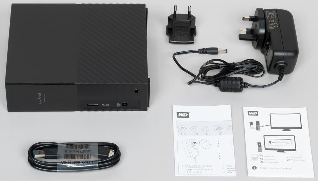 Другой вопрос, что в последнем случае портативность не нужна. Равно как и когда внешний винчестер стоит себе на столе — постоянно подключенным к стационарному компьютеру или регулярно используясь вместе с ноутбуком. Розетка при этом «под рукой» есть, размеры не мешают. Емкость же и скорость у стационарных жестких дисков выше, а цена в пересчете на терабайт — ниже, поскольку в них используются десктопные, а не ноутбучные винчестеры. В некоторые современные компьютеры (в т. ч. и формально относящиеся к настольным) десктопные HDD уже просто не помещаются — вот и ответ на то, зачем нужно внешнее исполнение. Пока упомянутых 5 ТБ достаточно — можно предпочесть универсальность. Если нужно больше — все усложняется. Например, недавно мы тестировали LaCie Rugged RAID Shuttle емкостью 8 ТБ, собранный на базе двух ноутбучных винчестеров по 4 ТБ. Достоинство — может питаться от порта USB. Недостатков же куда больше — от использования RAID0 (что потенциально ненадежно), до внушительной цены. Наш сегодняшний герой имеет ту же емкость, но стоит в два с половиной раза дешевле. Временами — даже дешевле, чем внутренние модели того же производителя той же емкости. Такова нынешняя специфика ценообразования, делающая ненужным некогда популярный спорт в виде самостоятельной сборки ВЖД из диска и коробки. Так что новый WD My Book вполне интересен — и не только этим.