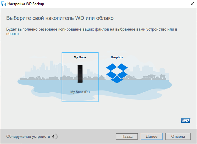 Например, WD Backup — простая программа резервного копирования, работающая с USB-накопителем или DropBox. Ничего неординарного делать не умеет, но базовые потребности обеспечивает.