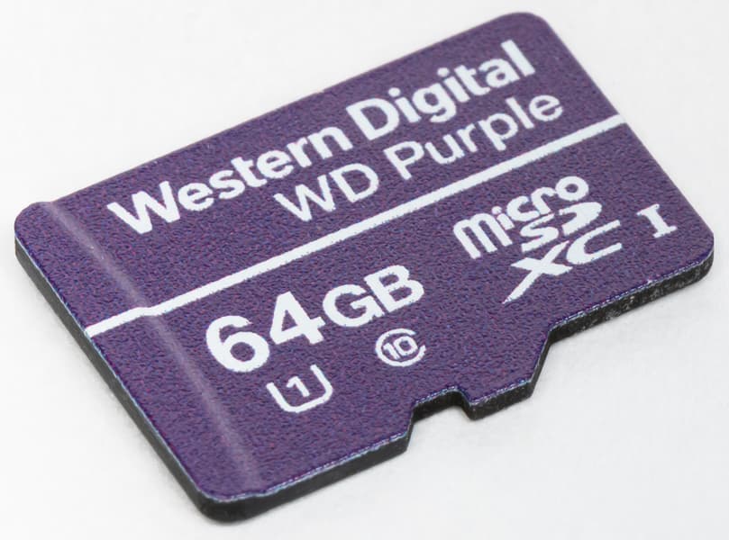 А вот анонс ровно два года назад карт microSDHC и microSDXC (в быту и те, и другие по традиции обычно продолжают именоваться «microSD» — подобно «родительскому» формату; так что и мы это в дальнейшем будем делать везде, где такое не вызывает разночтений) семейства WD Purple некоторых потенциальных покупателей немного удивил. Просто потому, что в ассортименте жестких дисков WD Purple — это как раз модели для видеонаблюдения (те самые — высокой емкости и с оптимизацией под массивы). При этом нельзя сказать, что карты microSD для работы с видео (в общем) и в системах видеонаблюдения (в частности) не используются — на деле всегда применялись. Основная сфера применения — одно- или двухканальные видеорегистраторы: например, автомобильные. Также используются они и в стационарных «несетевых» видеокамерах. Таковые до сих пор применяются там, где нет необходимости городить многокамерную систему. Или в дополнение к таковой — все-таки везде тянуть сети нецелесообразно, а Wi-Fi внутри зданий может работать не лучшим образом. Да и с электропитанием могут быть проблемы в части мест, а мониторинг в реальном времени не требуется — так что камера с автономным источником питания, с которой данные просто забираются «ногами» с определенными интервалами, отлично дополняет картину, позволяя «в случае чего» восстановить события, происходившие, например, в изолированном подвальном помещении. Плюс, такие носители активно используются и другими средствами съемки видео — например, экшн-камерами или дронами.