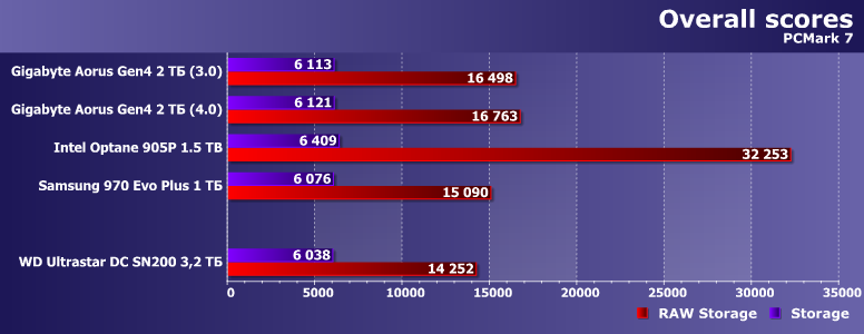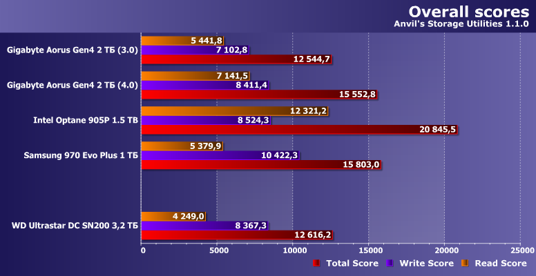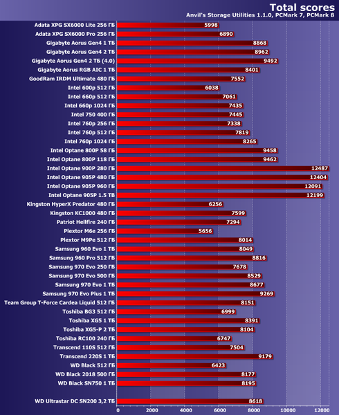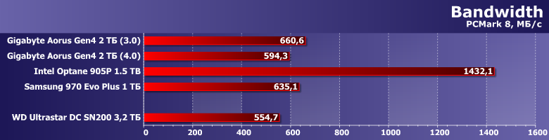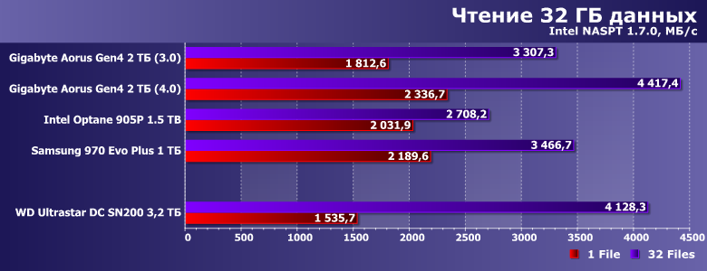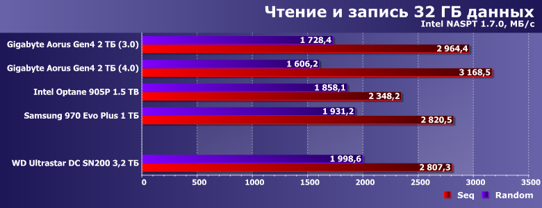 Также мы никак не можем обойтись без Gigabyte Aorus NVMe Gen4 SSD емкостью 2 ТБ, благо используемый в нем контроллер Phison E16 имеет интерфейс PCIe 4.0 х4 — а по пропускной способности это как раз эквивалентно PCIe 3.0 x8. Правда, для того, чтобы воспользоваться этим, на данный момент придется воспользоваться и процессором AMD Ryzen «серии 3000» на плате с чипсетом AMD X570, но данный накопитель мы как раз тестировали и по «стандартной» методике, и по «аппаратно модифицированной» (плата MSI MEG X570 ACE, процессор Ryzen 7 3700X — остальное как обычно) - так что возьмем и те, и другие результаты. По сути, это нам даст три «бытовых» конфигурации и одну радикально от таковых отличную — Optane SSD «пришли» из других сегментов рынка, где чувствуют себя куда лучше, чем при необходимости конкурировать с массовыми моделями, но этого, как раз, и вполне достаточно для ориентации на местности.