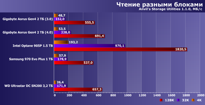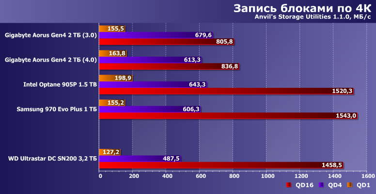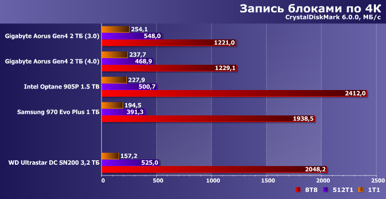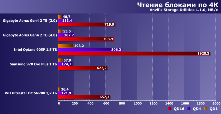 Мы неоднократно говорили, что такие сценарии — лучшее, что может случиться в жизни бюджетных твердотельных накопителей. Как и следовало ожидать, и худшее, что можно придумать для дорогих :) «Блеснуть» способен только Optane, благодаря низким задержкам самой памяти, но и то — лишь в плане потенциальных возможностей, за которые требуется выкладывать вполне реальные деньги. И немудрено — программному обеспечению «тесно» в рамках жестких дисков, но все проблемы снимает любой SSD. А модели для корпоративного рынка и вовсе не оптимизированы для подобных сценариев использования. Есть подозрения, что, например, одного лишь жесткого запрета программного кэширования достаточно, чтобы превратить SN200 в аутсайдера. С чем он, конечно, по мере сил «борется» быстрой памятью, широким интерфейсом и т. д. и т. п., но все равно не может стать лучшим в быту.