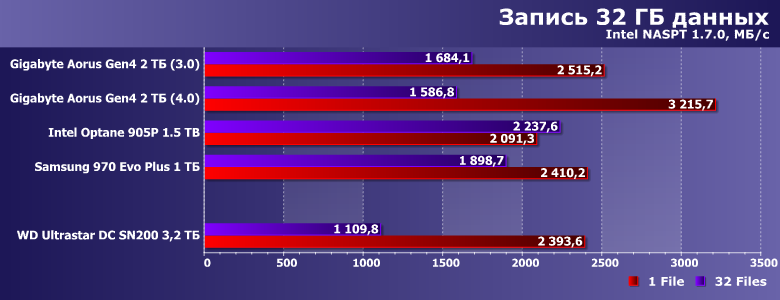 Повторить рекорд синтетики не удалось — не может типовая система воспользоваться всеми возможностями, которые предлагают 3,2 ТБ MLC-памяти с интерфейсом PCIe 3.0 x8. За ограничение четырех линий выбрались — но не так уж и далеко. Ускорение самих по себе линий, как видим, эффективнее.