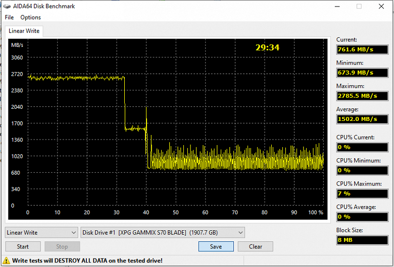 | XPG Gammix S70 Blade 2 ТБ (PCIe 3.0) | 2800,7 | 2792,3 |