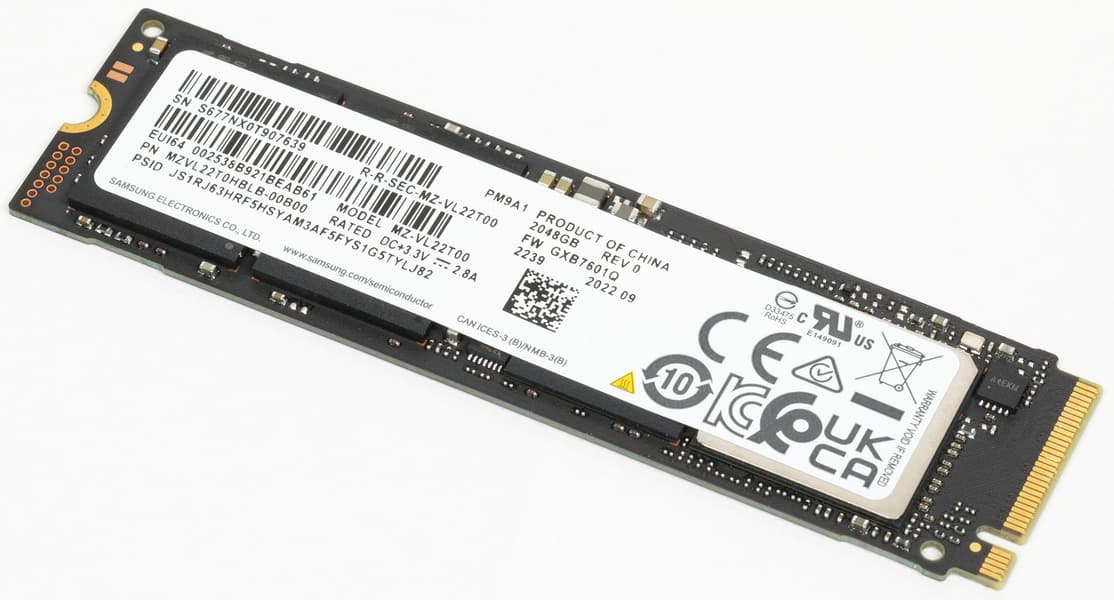 Понятно, что главным ориентиром будет HikVision G4000, но его одного маловато. А подобрать кого-нибудь из коллег по ОЕМ-цеху — сложно: большинство на более слабых платформах, да и по емкости ограничены одним терабайтом. Но есть Samsung PM9A1 — до сих пор один из лучших OEM-накопителей на рынке. И многие приобретали его сами и осознанно — поскольку это непосредственный аналог Samsung 980 Pro, который одно время был вообще одним из лучших накопителей на рынке. И сейчас приобретают, поскольку PM9A1 стоит дешевле, а вот аналог 990 Pro в ОЕМ-сегменте в Samsung решили не выпускать. Да и вообще, PM9A1 всё реже попадается в компьютерах, поскольку везде, где возможно, его предпочли заменить куда более медленным и вообще простеньким PM9B1. Но в целом с рынка PM9A1 не исчез.