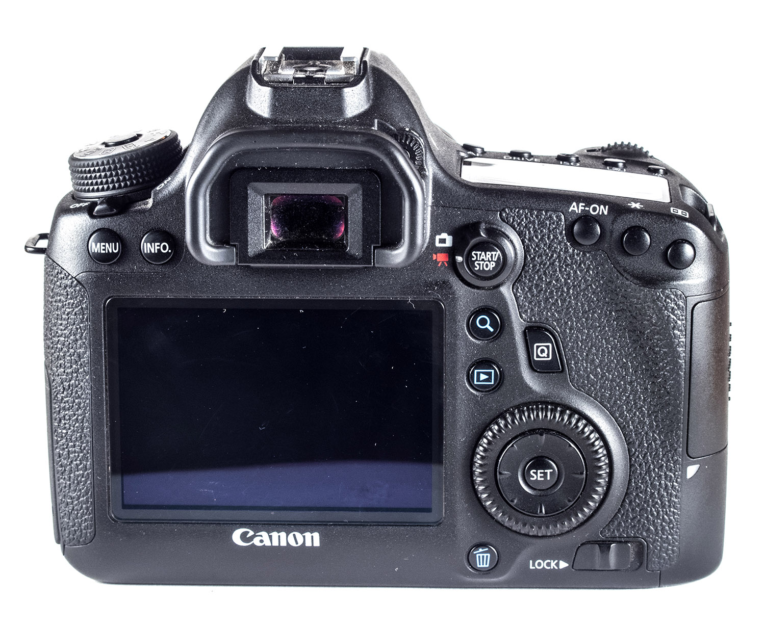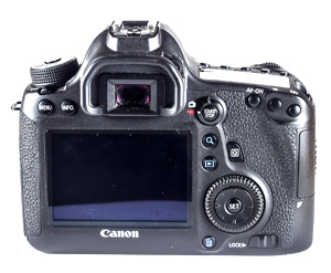 - Дизайн Canon EOS 6D несколько необычен, в модельном ряду Canon полного аналога нет. Экран Canon EOS 6D фиксированный, но все кнопки на задней панели смещены под правую руку. Правда, удобство работы с камерой от этого не пострадало (или не сильно пострадало).
