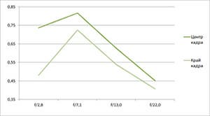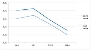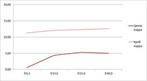 - Как правило, небольшой разрыв в разрешении на краю и в центре кадра.