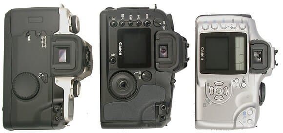 Слева направо: EOS 50, EOS D60, EOS 300D