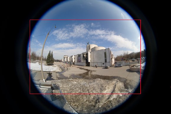 Больше, правда, и искажения. Исправим их программно и получим примерно ожидаемый угол обзора. Однако и у широкоугольника искажения присутствуют, поэтому исправим и их и снова сравним угол обзора. Исправляя искажения, следует учитывать, что вы выбираете между прямыми линями и прямыми углами, что хорошо и что плохо — это вопрос вкуса, и здесь, как известно, товарищей нет :-)