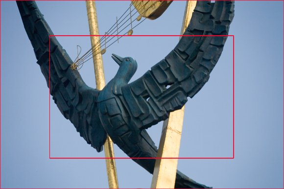 Одинаковый объектив и одинаковый размер чувствительного элемента позволяют получить изображение, аналогичное сделанному камерой D60, просто вырезав центральную часть снимка, сделанного камерой 5D. Отступаем от угла на 500 пикселей от длинной стороны и 780 от короткой и вырезаем кадр размером 1900×2800 пикселей.