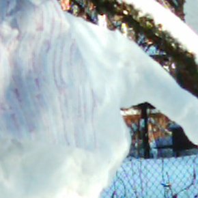 Можно предположить, что в камере используется прямоугольная ЖК матрица, и вначале собирались использовать полностью ее площадь. Но потом передумали. Однако видоискатель уже переделывать не стали, а жаль. Для того, чтобы создать ощущение, возникающее при съемке двухобъективной зеркальной камерой, надо было использовать квадратный ЖК экран и изображение на нем сделать зеркально отраженным. Тогда хотя бы можно было бы почувствовать, каково это — наводиться на объект подобной камерой.