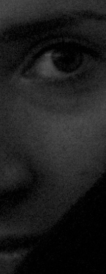 Сложные условия искуственного освещения (лампа накаливания) в лифте и парадной, недостаточный свет, 800 ISO является минимально допустимой величиной (выдержка тут около 1/15 на дифрагме f:2,8). Шум вполне приемлемый и очень точно передан тон — именно так это и воспринимается глазами. Давайте посмотрим на структуру шума поближе: