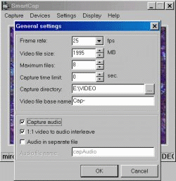 На мой взглях наиболее интересна и удобна программа SmartCap, написанная Прохоровым Борисом специально для этих плат. Основное ее преимущество в том, что она автоматически «нарезает» оцифровываемый поток на файлы заданного размера (например 1995 ГБ). Тем самым довольно легко преодолевается ограничение на размер AVI файла в 2 ГБ. Программа имееет множество настроек и работает не только с платами серии miroVIDEO DC30, но с многими другими платами иных производителей.