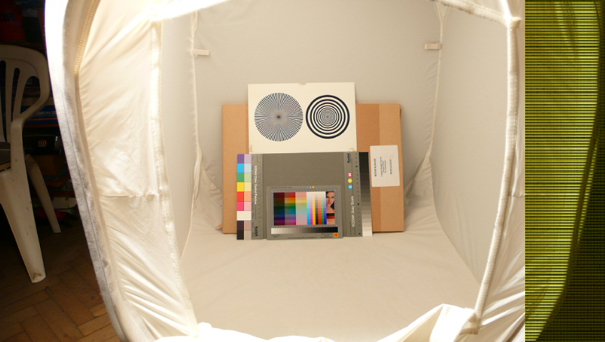 На фотографии снимок тестовой таблицы на стоящих рядом рамке и ноутбуке Fujitsu Lifebook P2110 (нижнее изображение). Снимок сделан камерой Canon 5D в RAW, и цветовая температура при преобразовании RAW установлена равной 6500К.