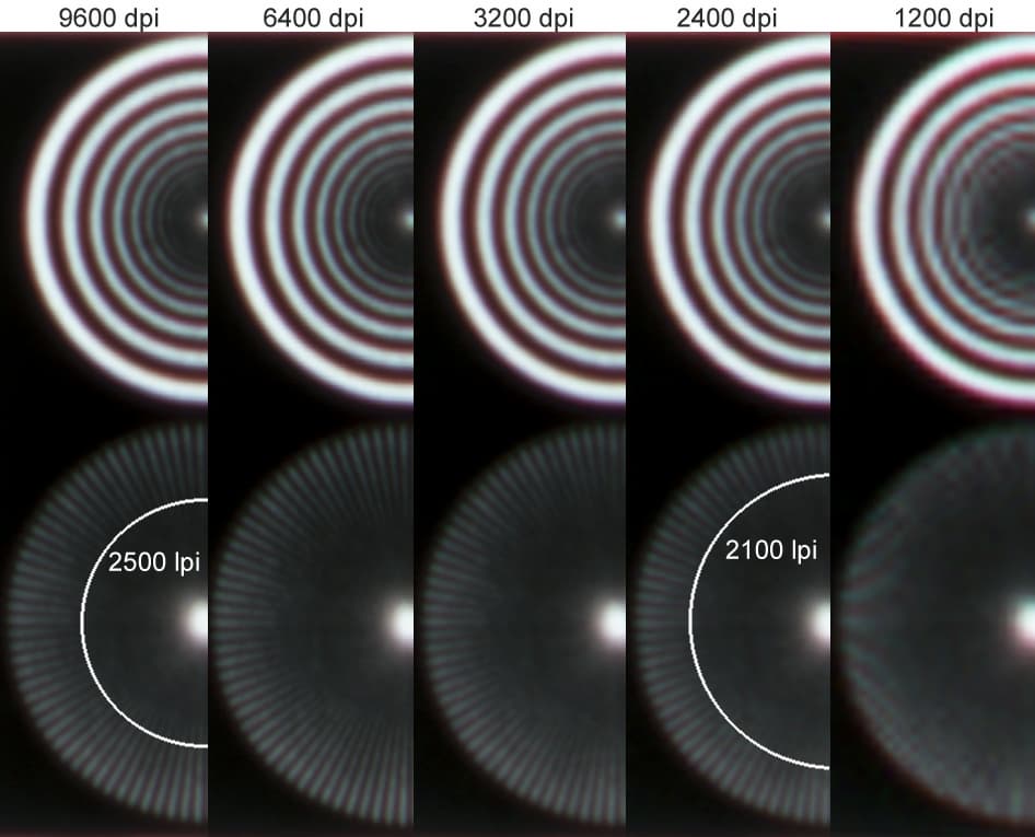 Заявленные высокие значения разрешения в dpi конечно же реализовать на практике в ppi вряд ли возможно. По опыту работы со сканерами прошлых поколений можно предположить, что разрешение не будет выше разрешения отдельной сканирующей линейки. То есть максимум, на который еще можно рассчитывать при измерении разрешения с помощью штриховой миры на пленке, 3200 ppi.