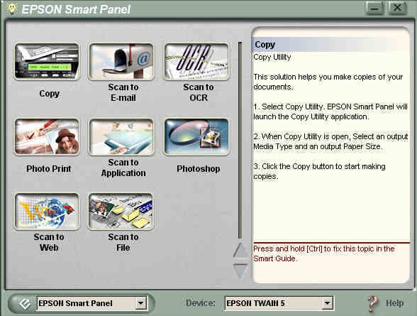 Программное обеспечение для работы со сканером включает также EPSON Smart Panel и Epson Photo Print.