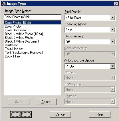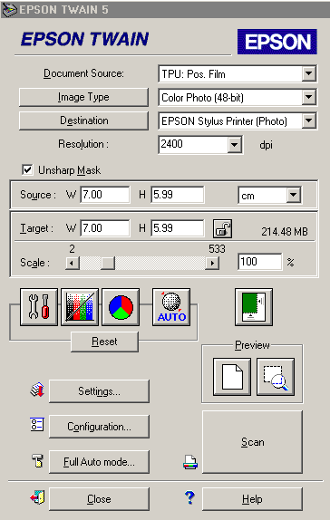 Драйвер EPSON TWAIN 5 обладает всеми необходимыми настройками. На иллюстрациях приведены основные диалоговые окна.