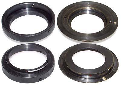 Слева адаптеры Пеленг — Nikon F, справа М42 — Canon EOS