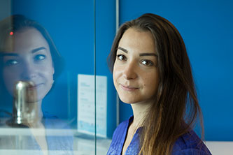 Портрет в интерьере, снятый в непростых условиях освещения. Опишем сцену в двух словах. Погода пасмурная; дневной свет проникает в помещение сквозь «светофильтр» в виде стеклянной перегородки (слева в кадре) и рисует на обращенной к нам изнанке стекла отражение модели. Справа, за спиной девушки, расположены на некотором удалении потолочные лампы накаливания, добавляющие в сцену еще примерно 15% освещения. Свет от этих ламп падает на левую половину лица и смешивается с дневным светом, падающим слева. Несмотря ни на что, баланс белого отработал безукоризненно. Передача цвета даже на правой половине лица модели, находящейся целиком во власти дневного света, выглядит вполне естественно. Это тем более приятно, что фотографам известны объективы других производителей, уводящие белый в такие дебри, откуда его очень непросто вернуть, даже корректируя баланс по серой мишени в ходе постобработки.