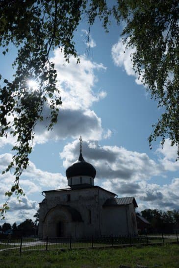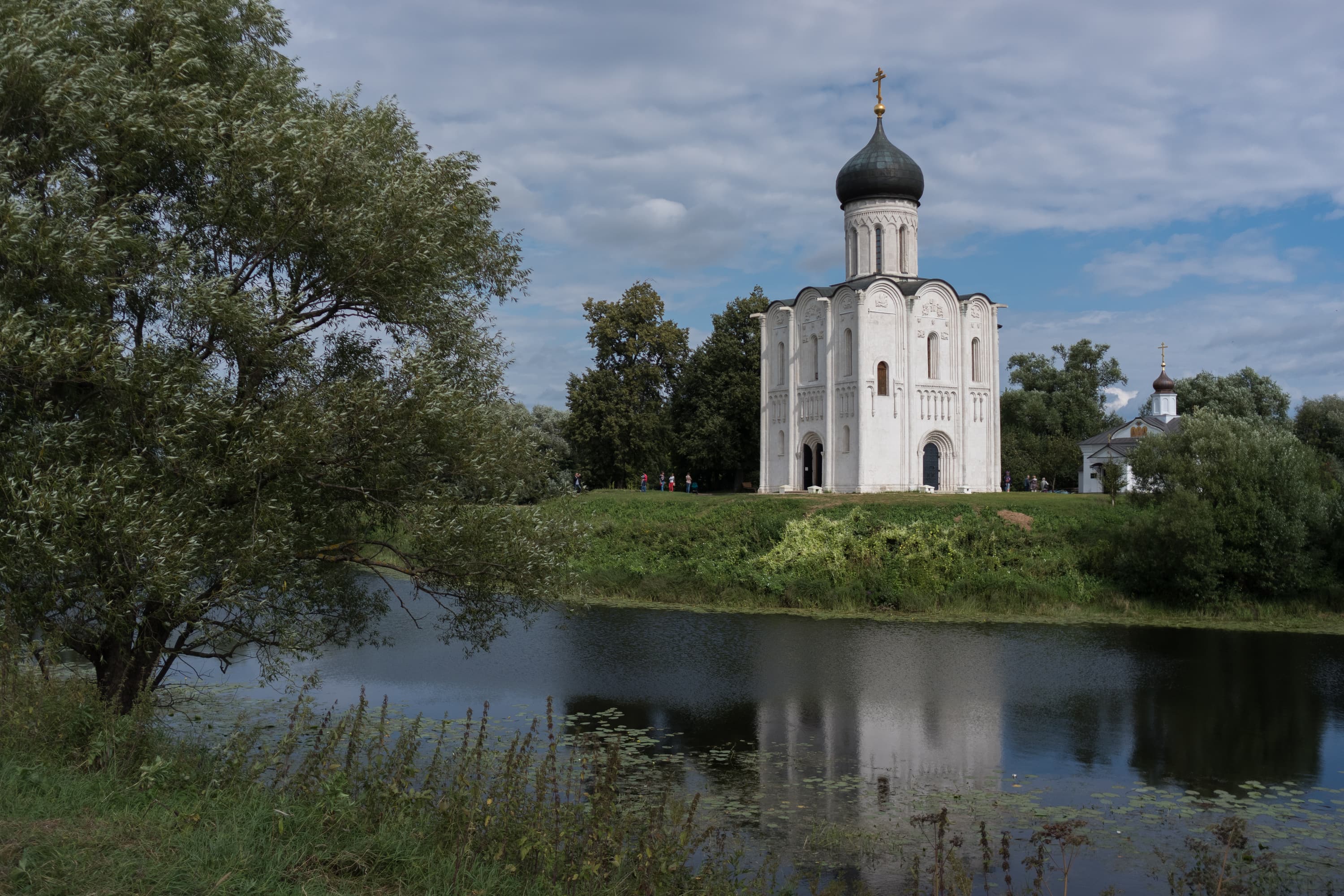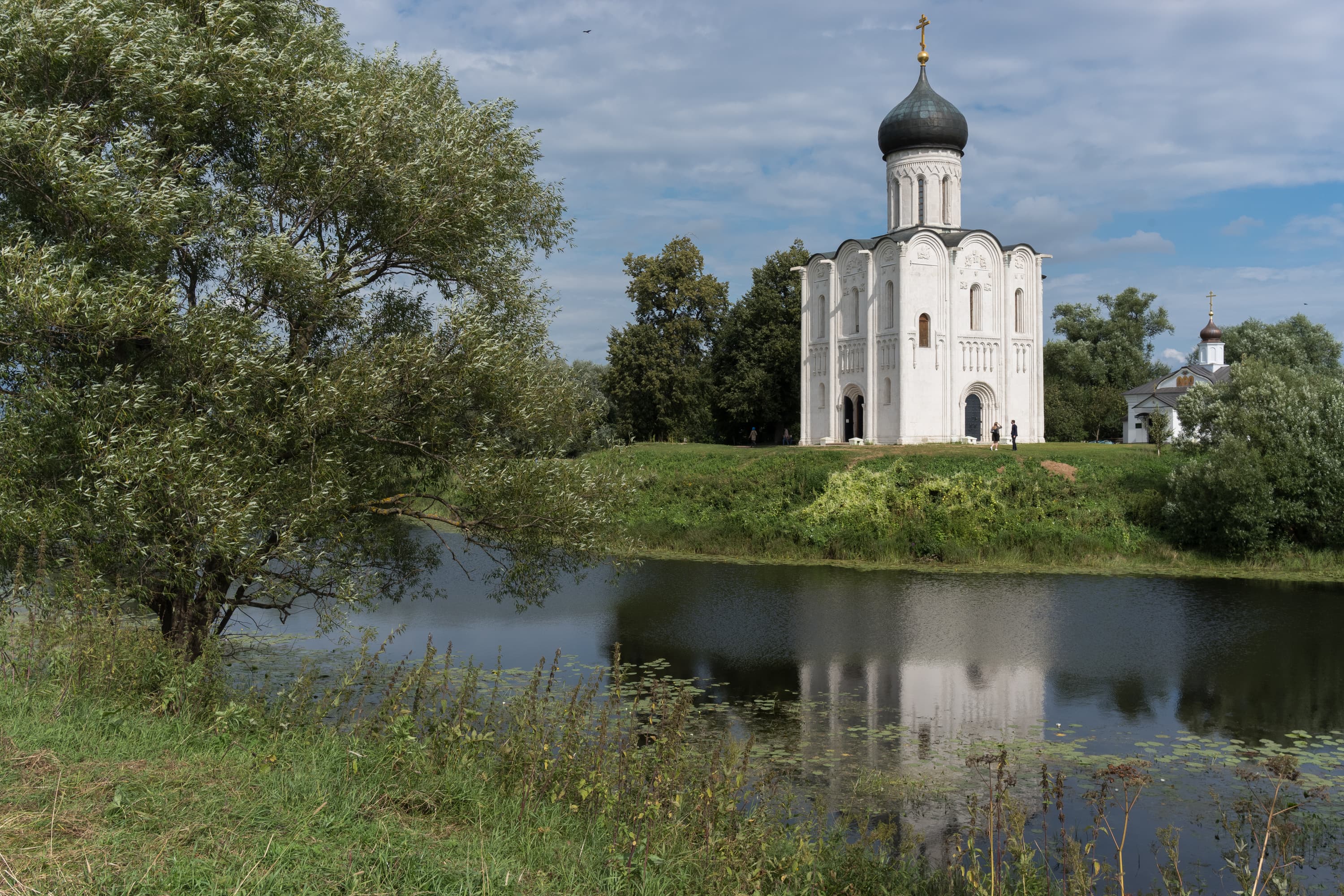 Посмотрим, как покажет себя АББ в условиях повторной съемки с перекадрированием, перефокусировкой и перенастройкой цветности автоматом. Сцена: церковь Покрова на Нерли в Боголюбово Владимирской обл. Fujinon XF 23mm f/2 R WR; ISO 200. Левый снимок сделан при F2 и 1/8000 c (электронный затвор), правый — при F8 и 1/900 с.