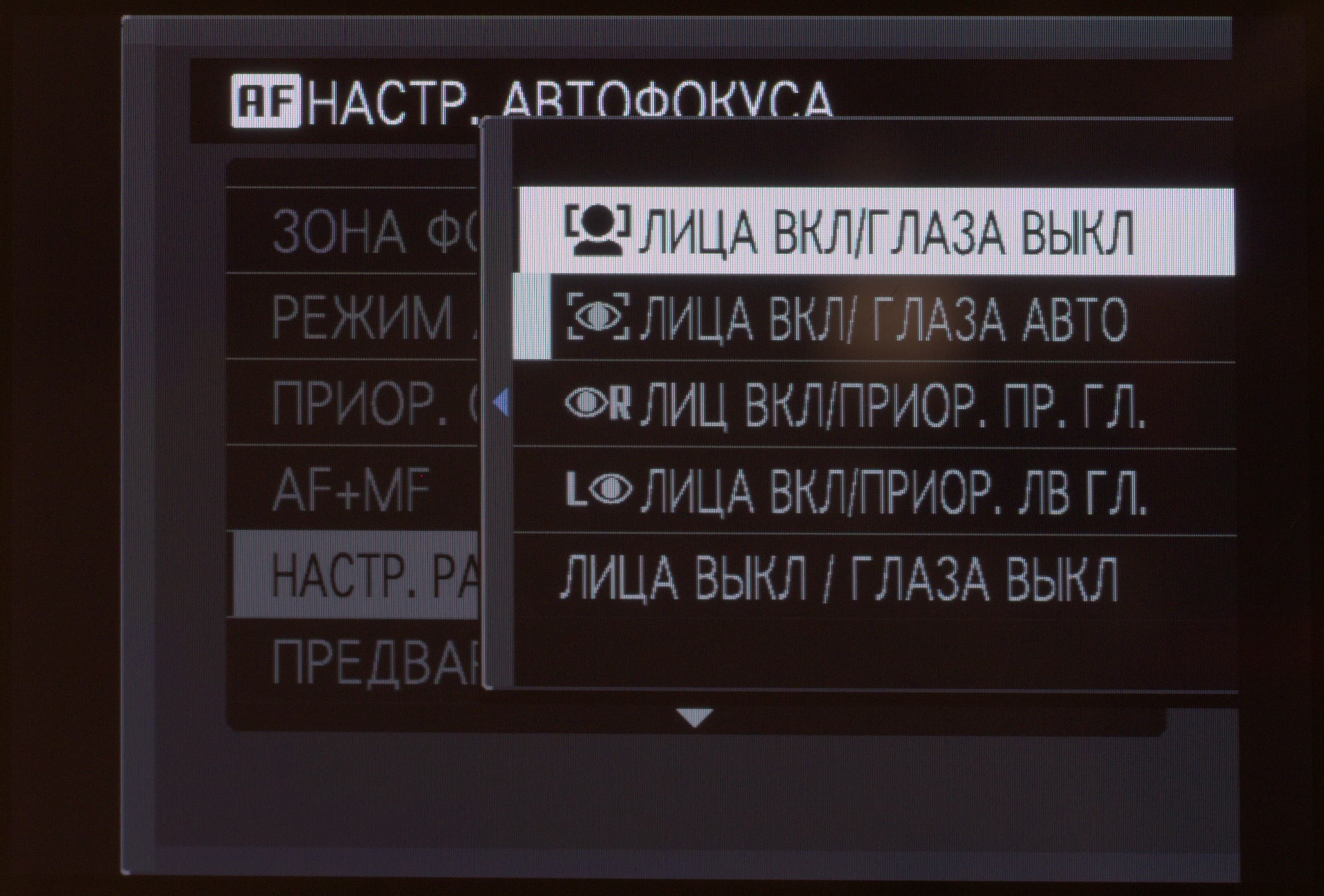 | Контрастный или гибридный АФ | Fujifilm X-A3 | Fujifilm X-T20 | Fujifilm X-T2 | Sony RX-100 IV | Nikon D5500 | Canon EOS 7D Mark II |