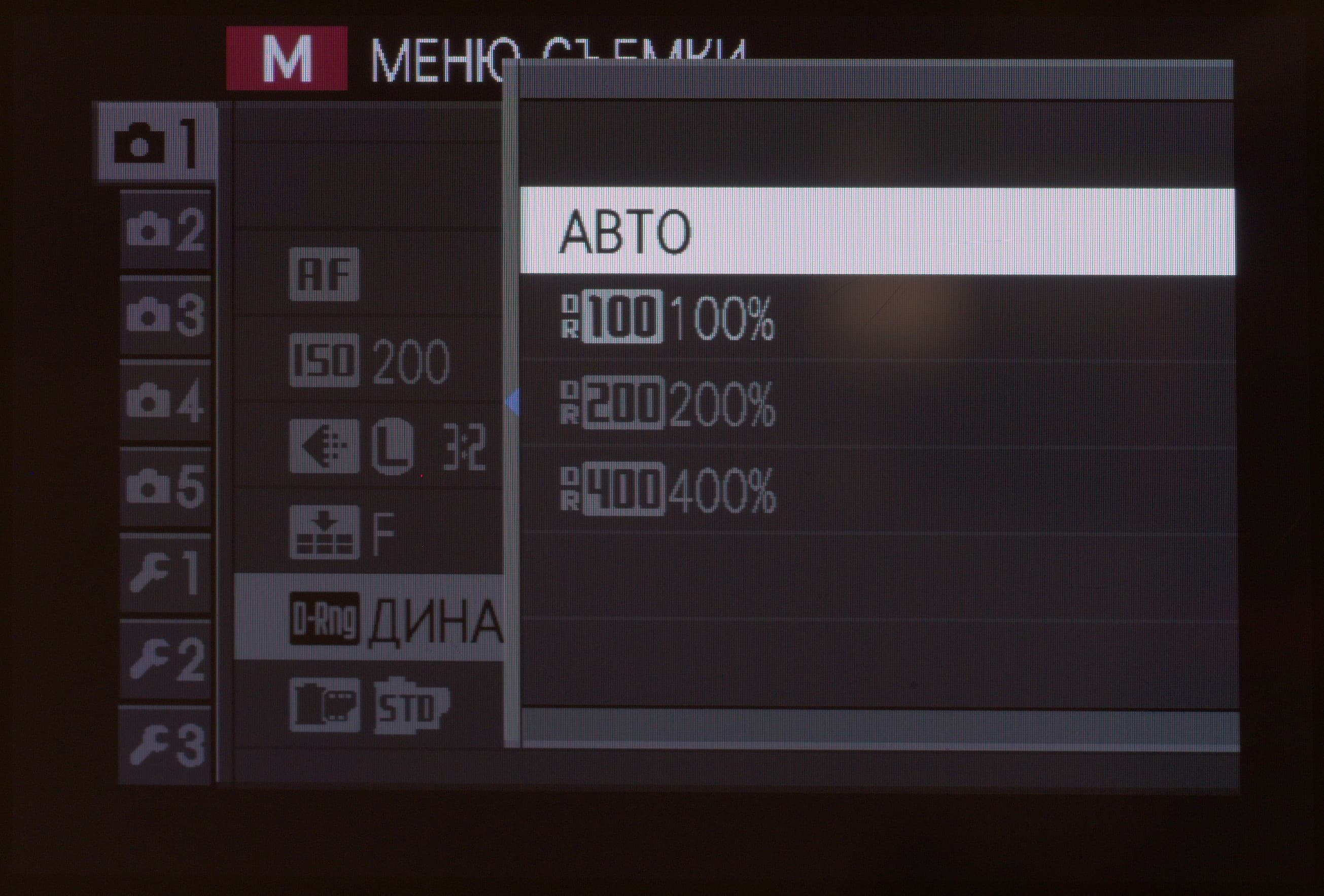 | Динамический диапазон | Авто, 100% (без ограничений по ISO), 200% (ISO 400 и выше), 400% (ISO 800 и выше) |
