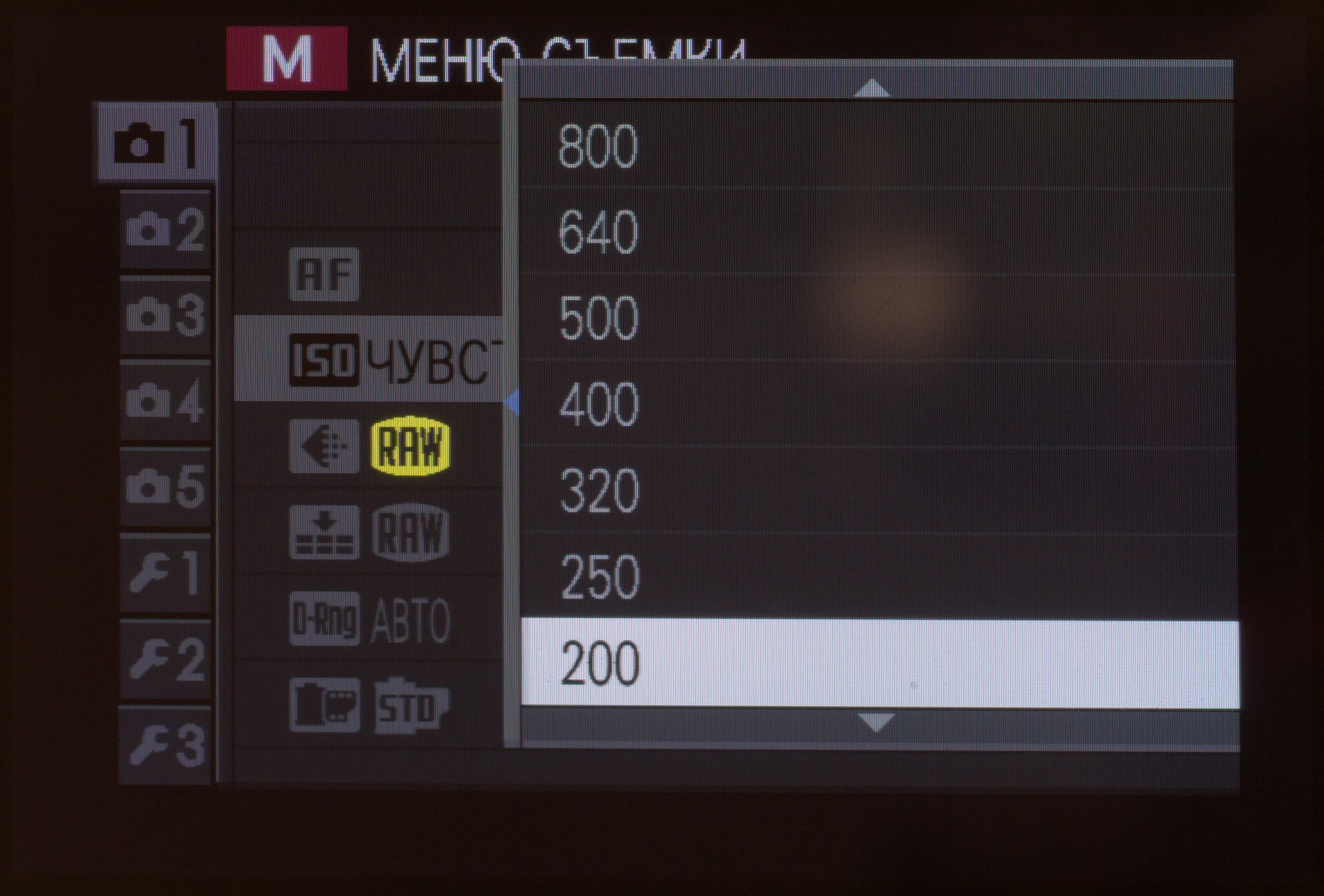 | Эквивалентная светочувствительность | ISO 200—6400 (расширение до ISO 100—25600) |