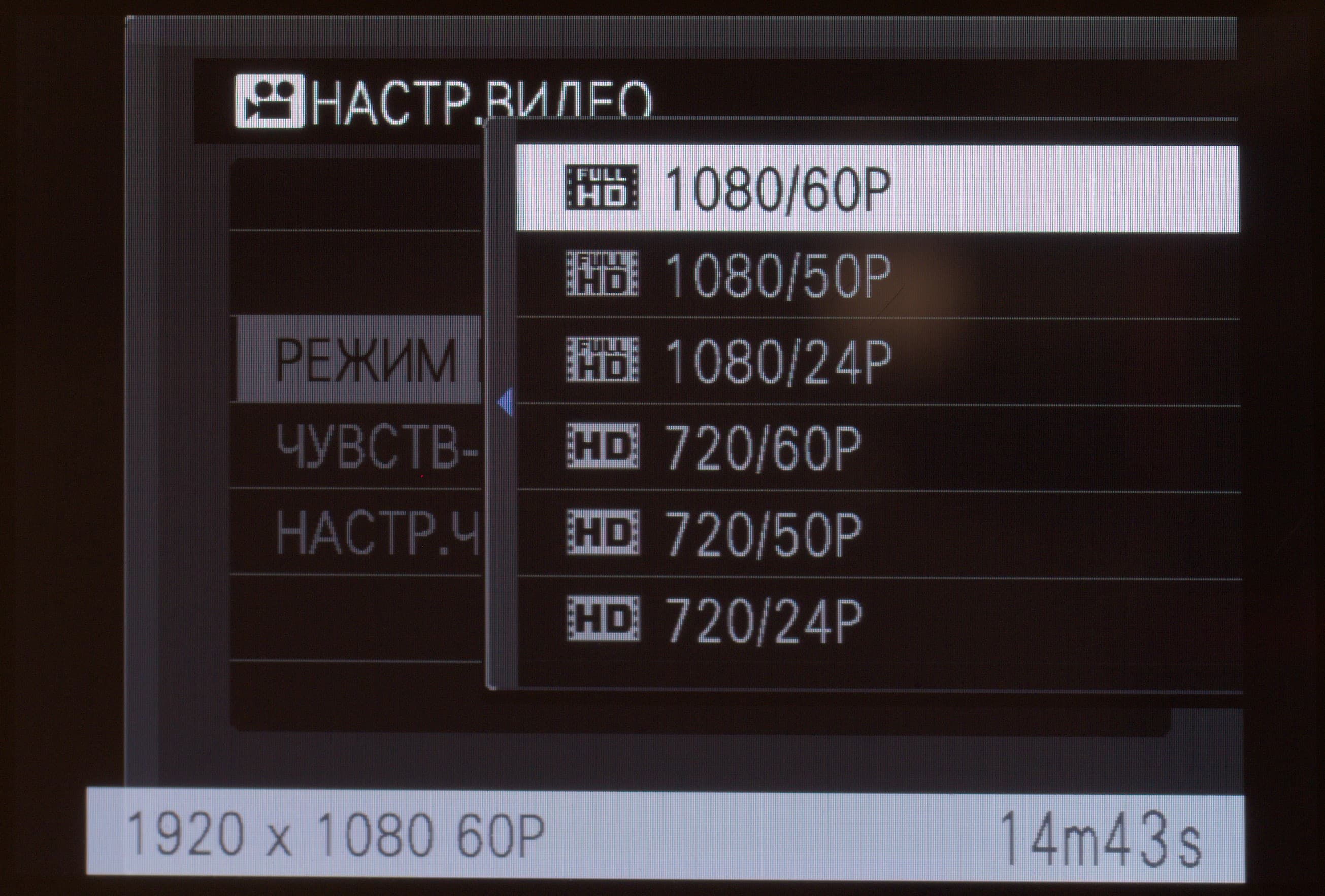 | Видео | Full HD 1920×1080 60p/50p/24p (непрерывная запись до 14 минут); HD 1280×720 60p/50p/24p (непрерывная запись до 27 минут) |