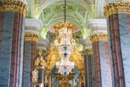 Однако не будем увлекаться. Лучше оценим, что происходит при умеренно высокой светочувствительности. Следующий кадр сделан в Никольском Морском соборе (Кронштадт Ленинградской обл.). Света тоже было маловато, освещение носило смешанный характер (дневной свет из окон и искусственный от светодиодных ламп). Fujinon XF 18-55mm F2.8-4 R LM OIS при 33 мм, F3,5, 1/20 с, ISO 800. Здесь наше вмешательство при постобработке не потребовалось.