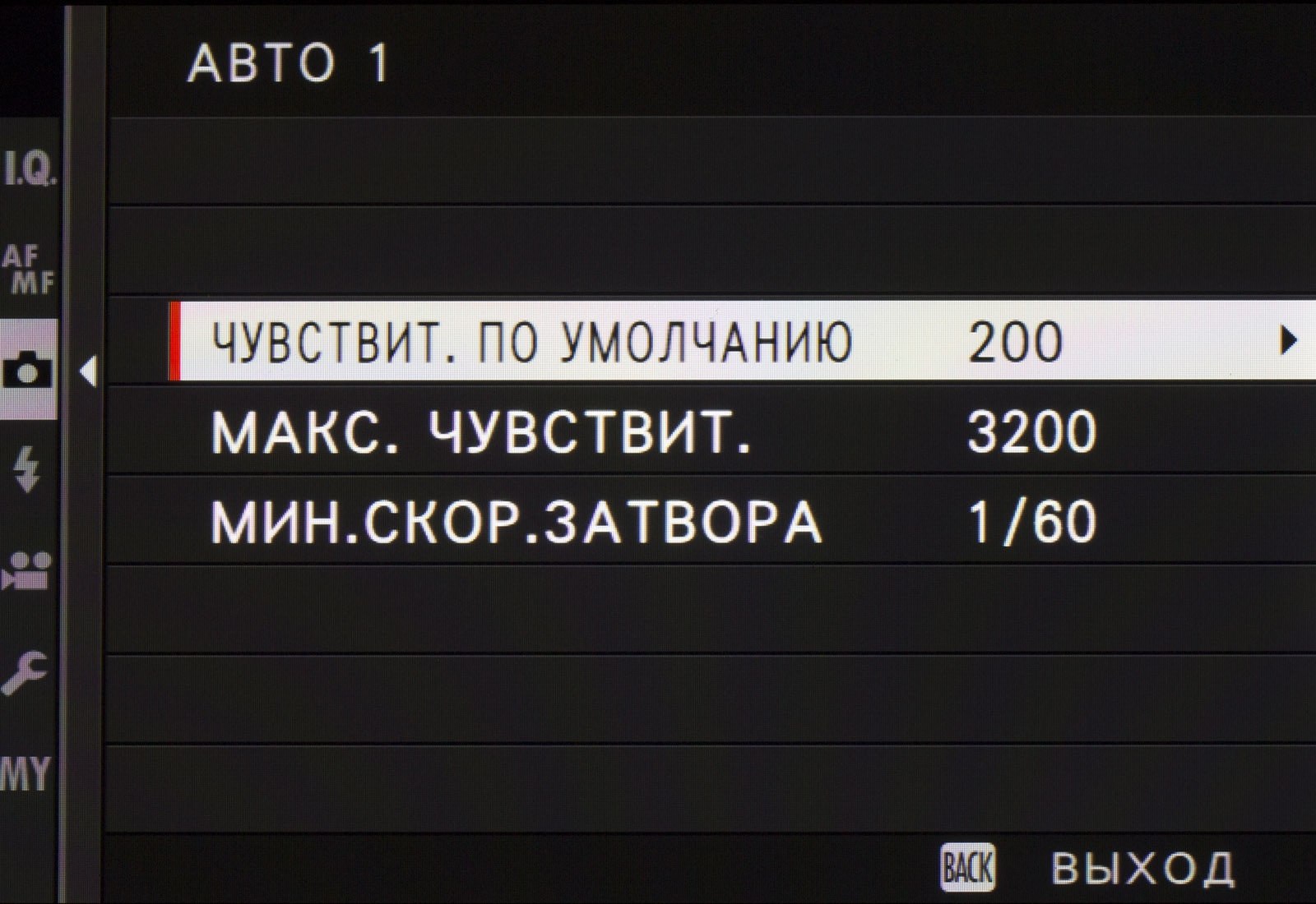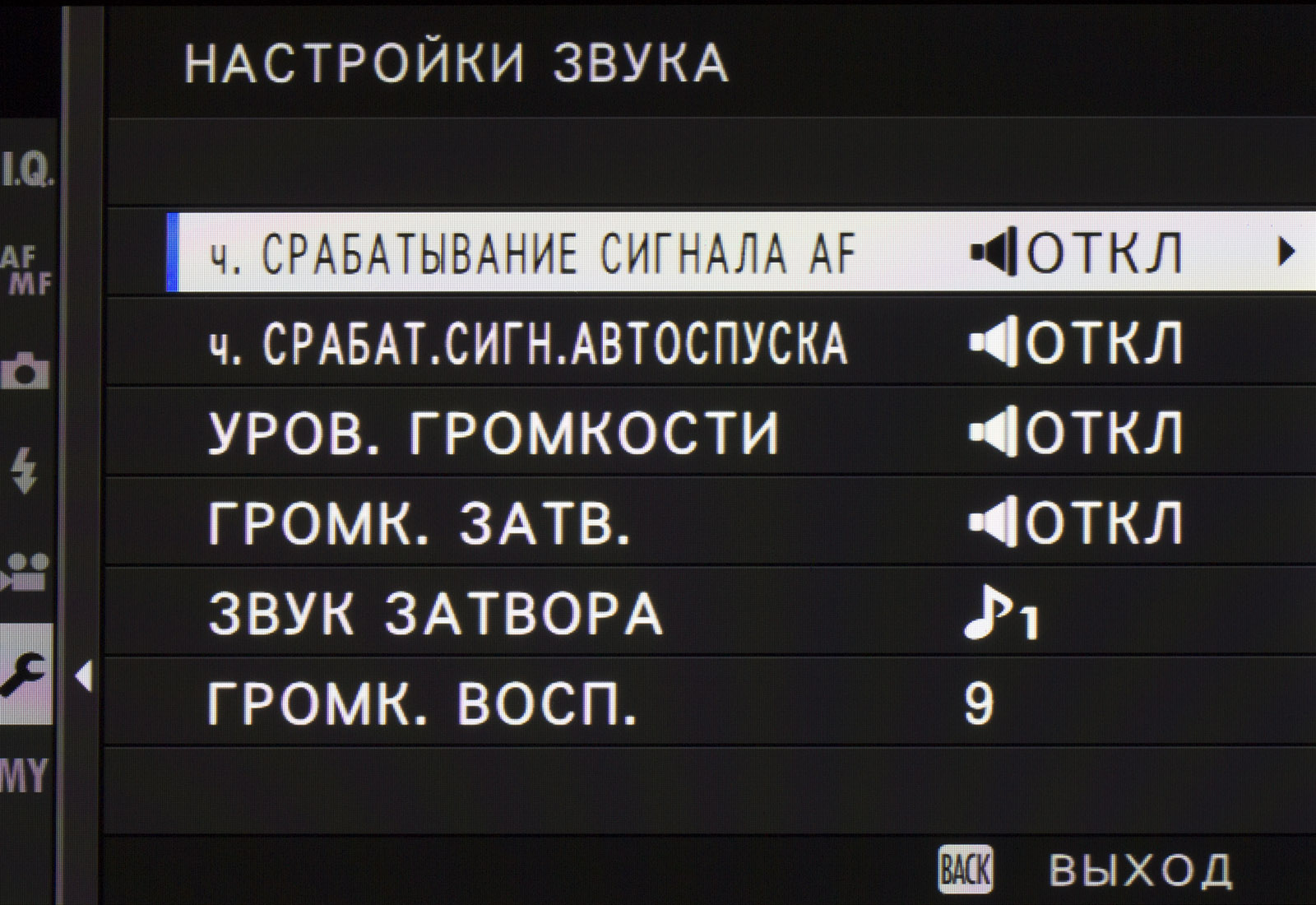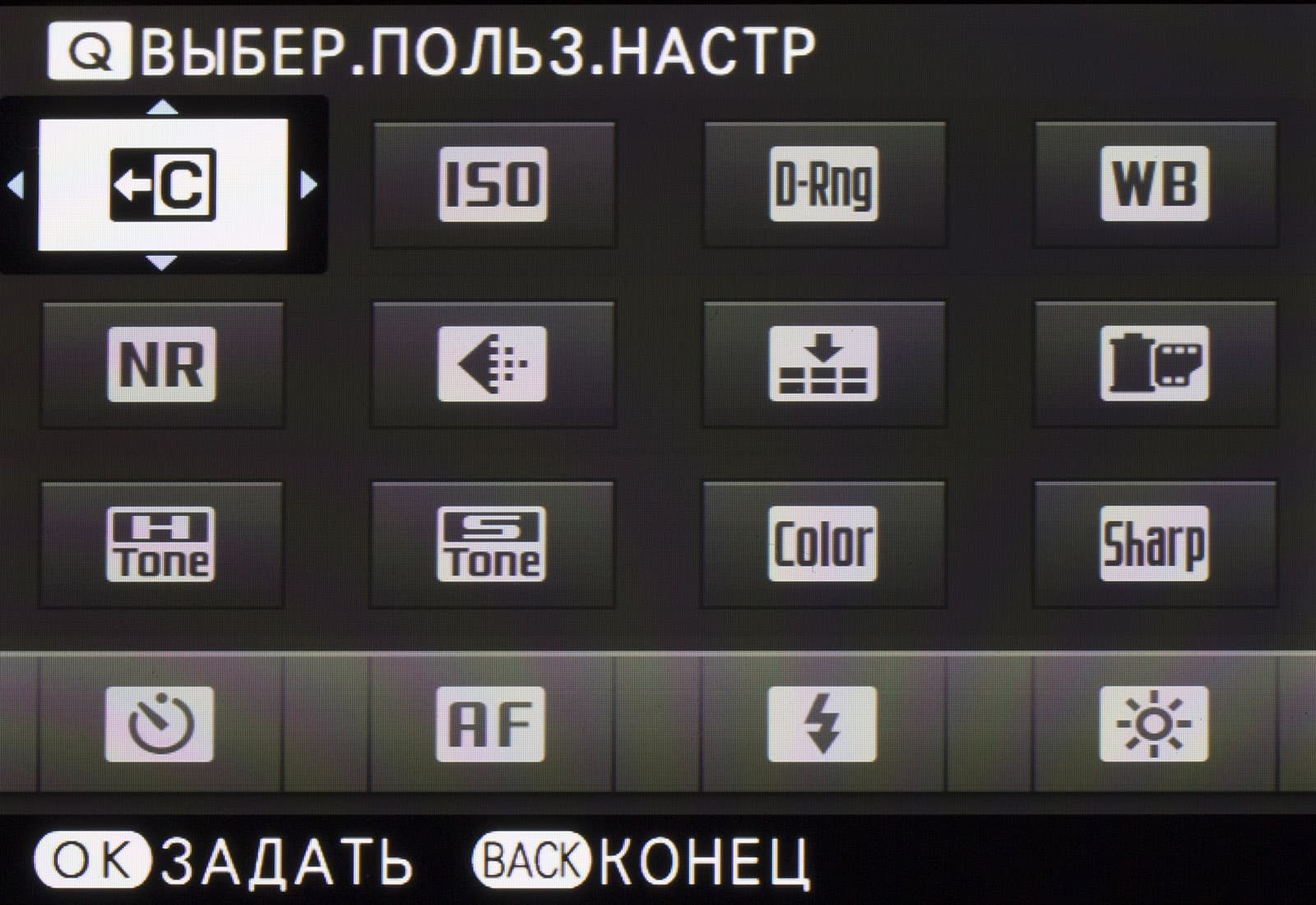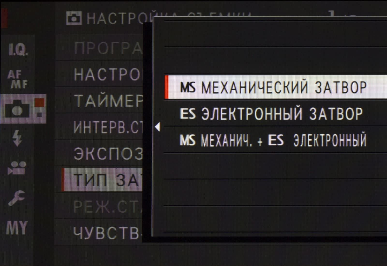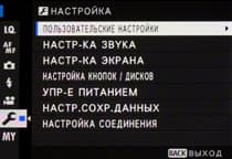 - I.Q. — Image Quality, «Качество изображения». Это настройки формата файлов, вида RAW (со сжатием или без сжатия), моделирования «пленки», эффекта зернистости, установки динамического диапазона и др.