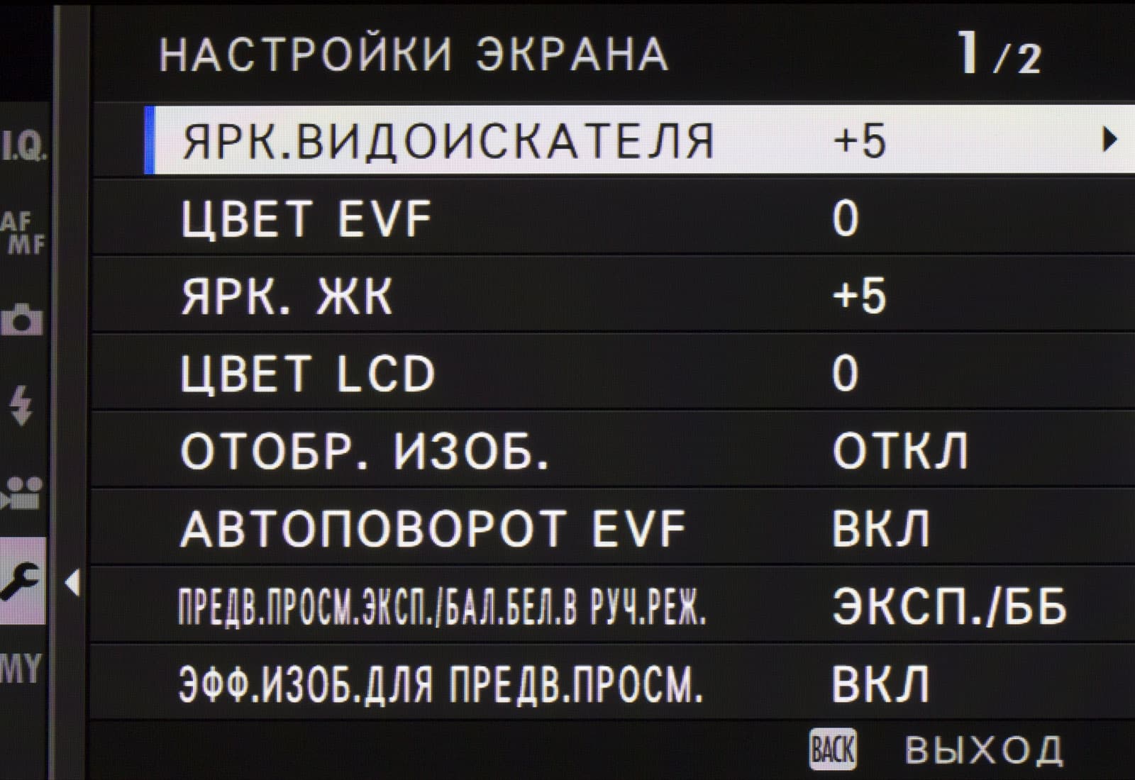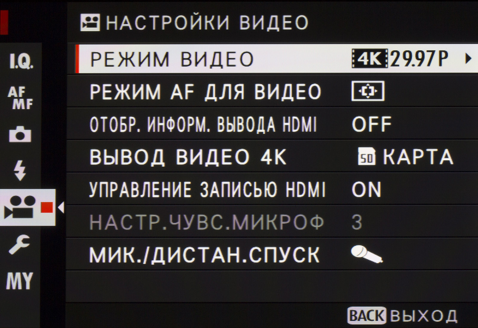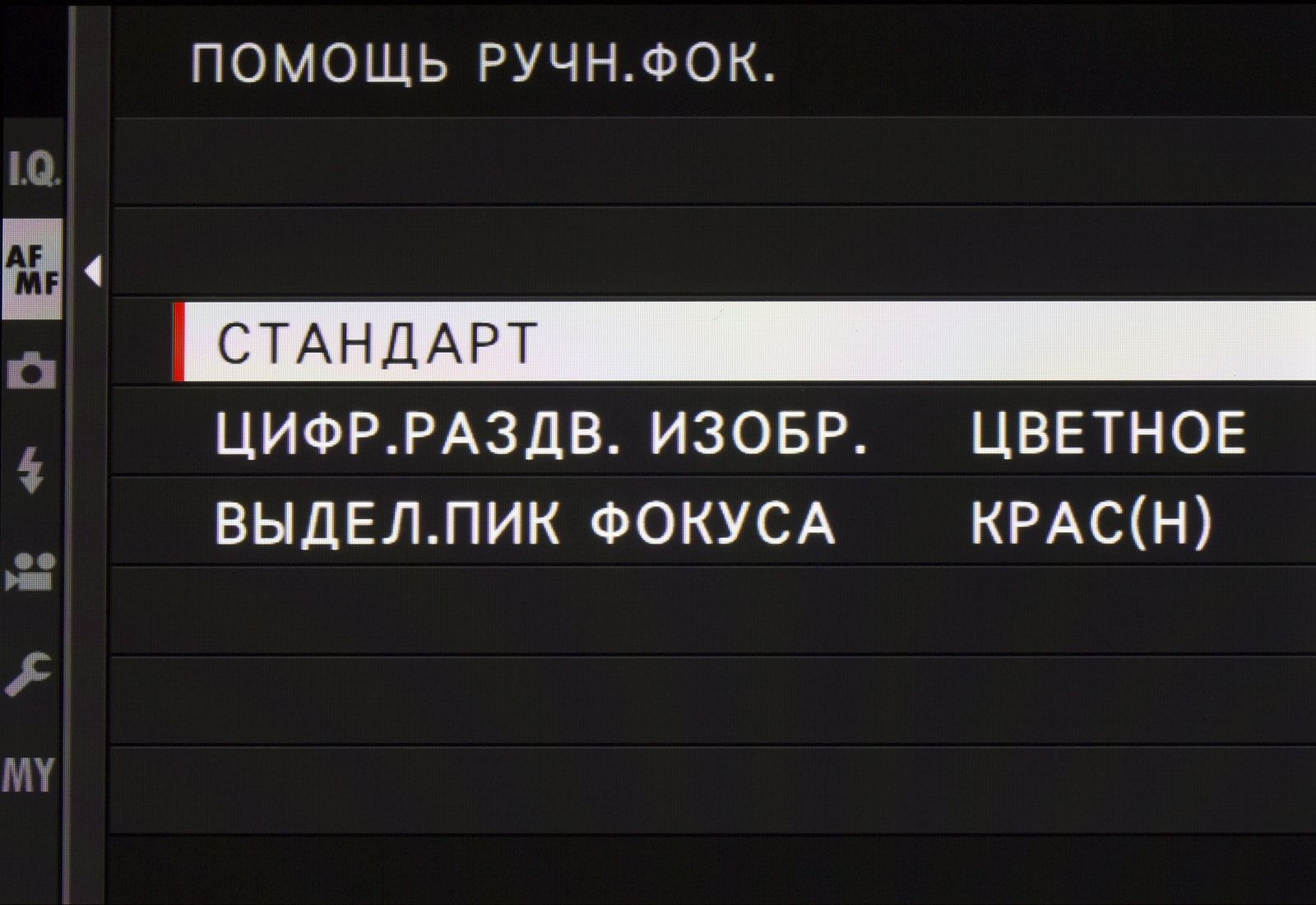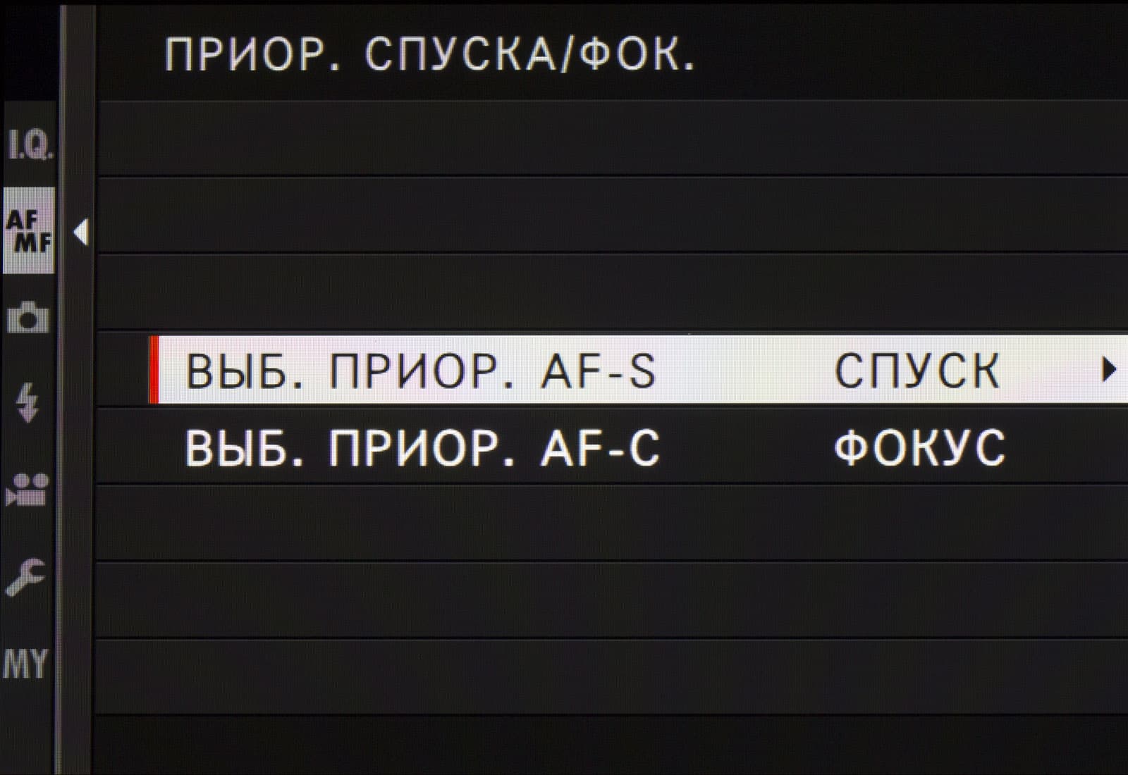 - AF/MF — настройки автоматической и ручной фокусировки.
