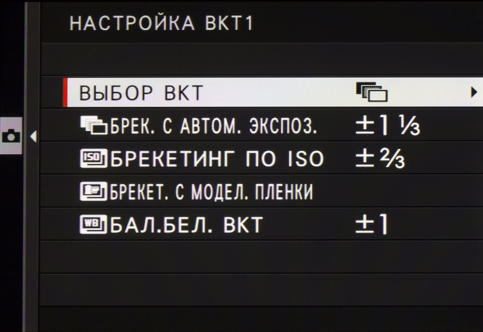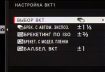 | Брекетинг | по экспозиции, по ISO, по «пленке», по балансу белого, по динамическому диапазону |