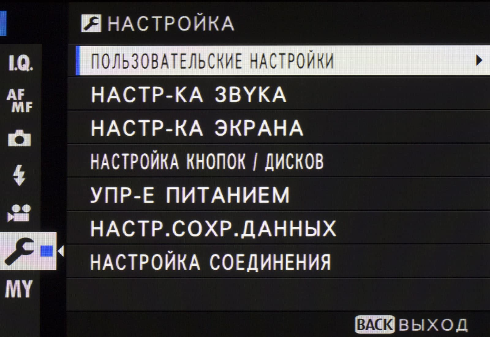 Меню у Fujifilm X-T20 организовано примерно так же, как и флагманской модели. Его многочисленные пункты разделены на группы: