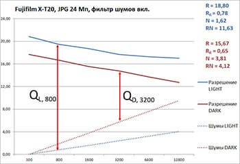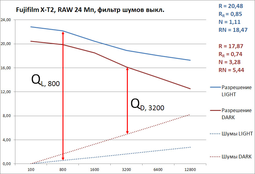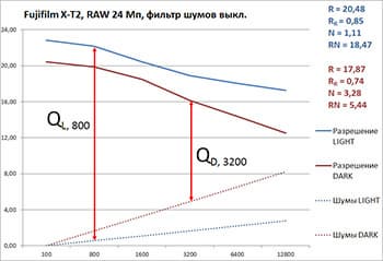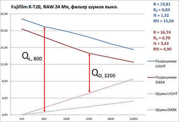 | Fujifilm X-T20 RAW, фильтр шумов выкл. темная сцена уровень шумов N=3,4 | Fujifilm X-T2 RAW, фильтр шумов выкл. темная сцена уровень шумов N=3,3 | |