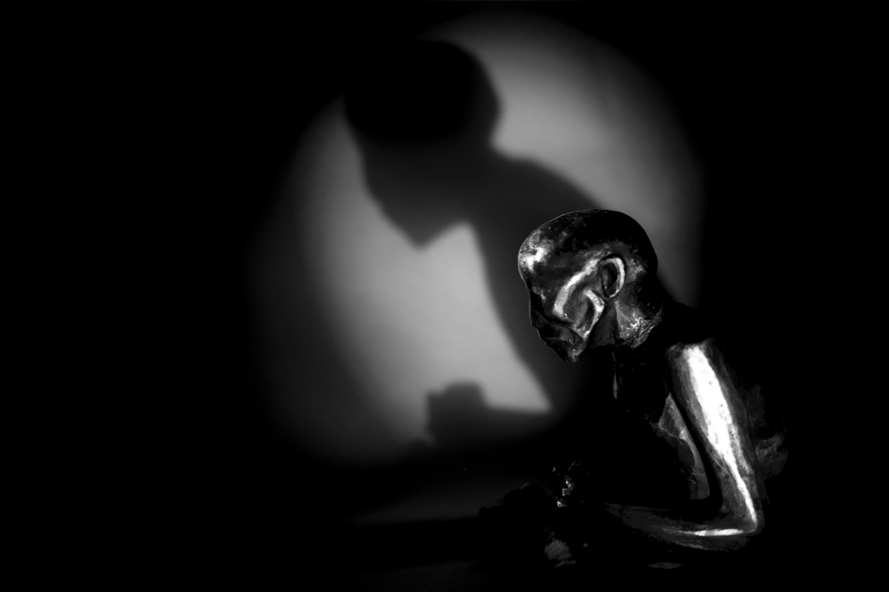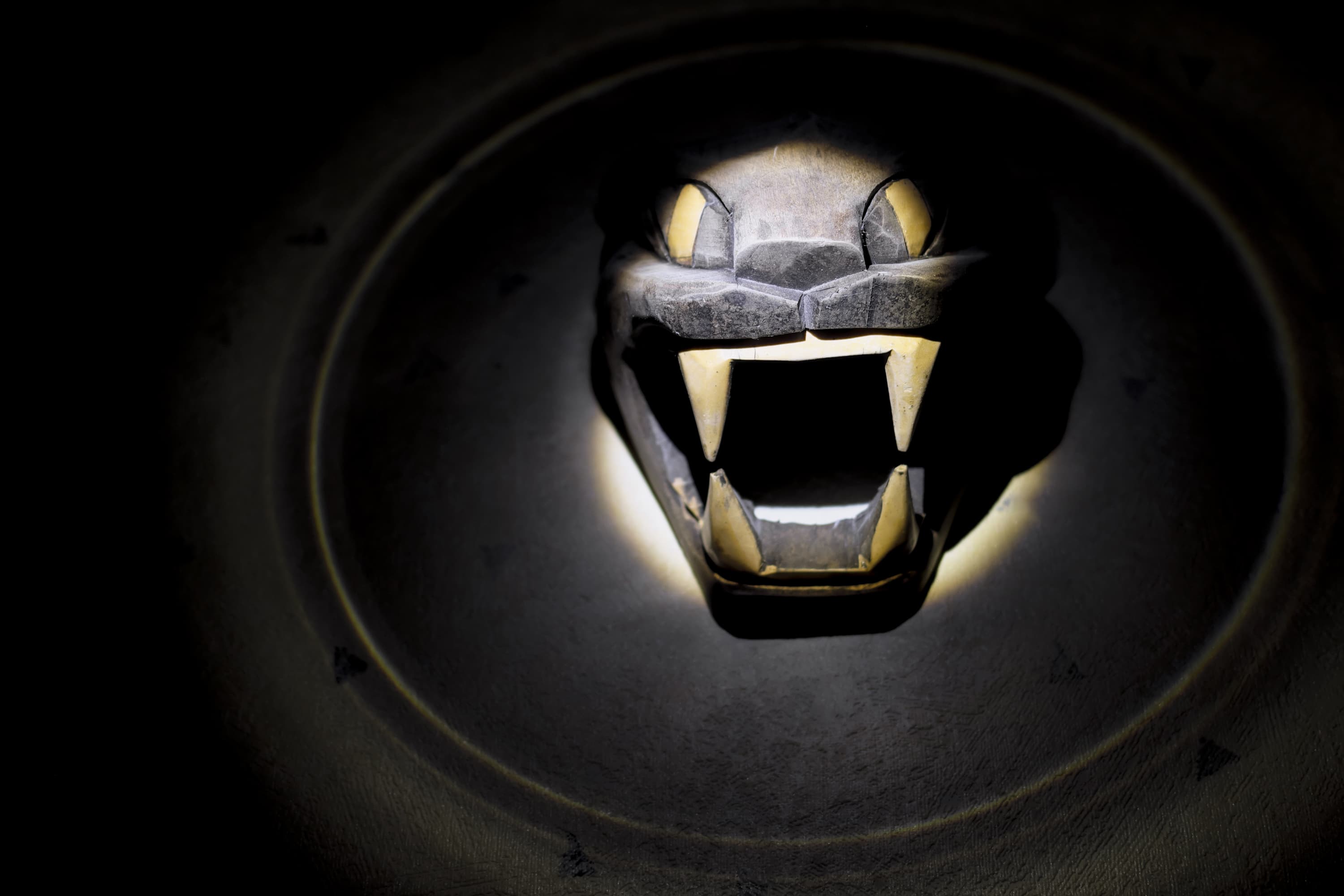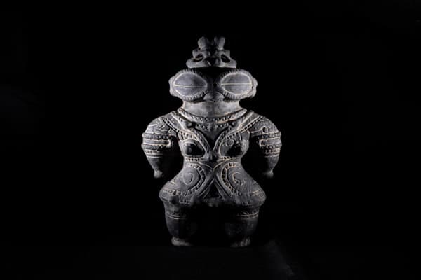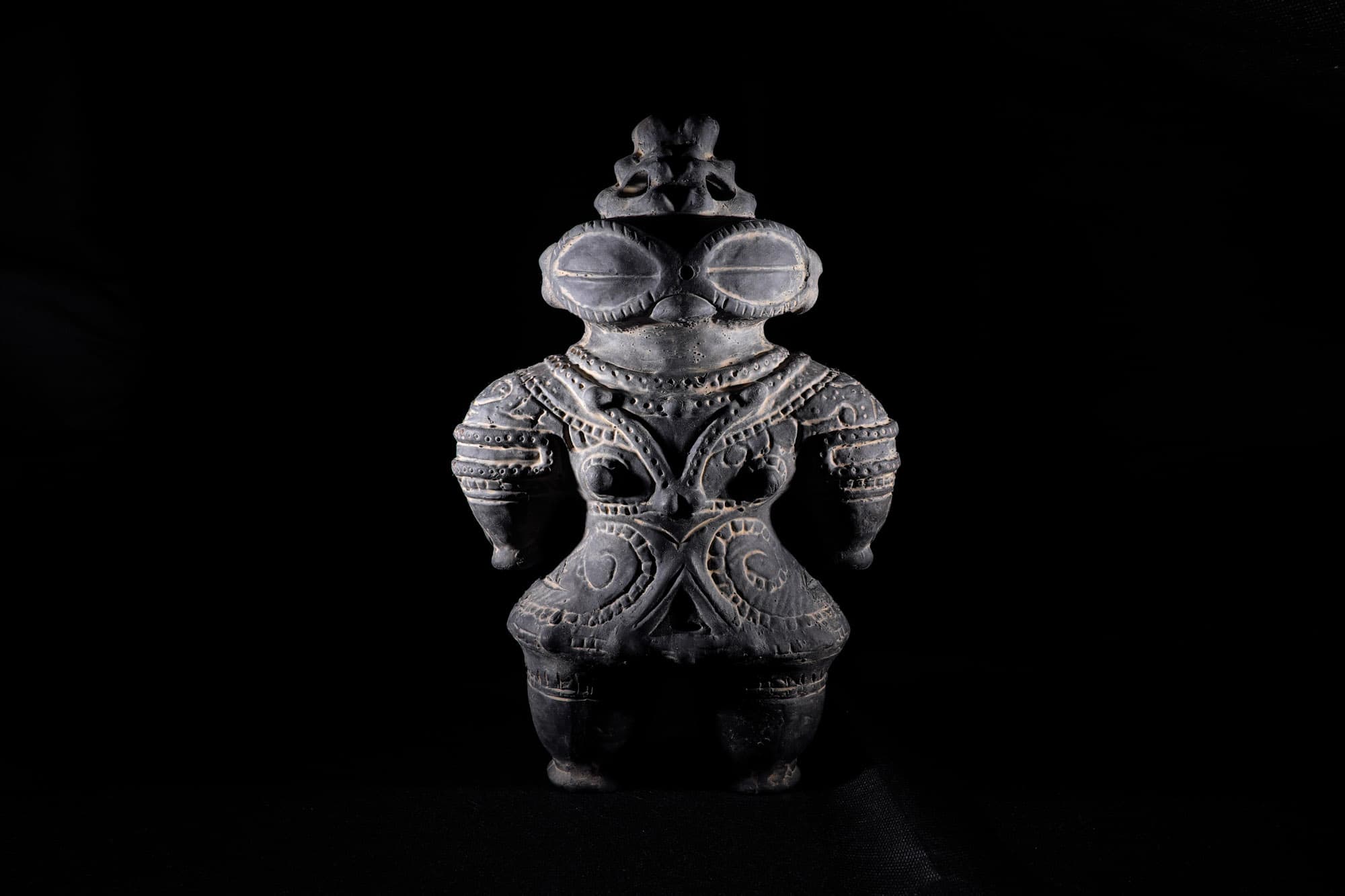 Световой импульс хорошо прорисовал детали японской глиняной статуэтки догу, полностью сохранив структуру поверхности.