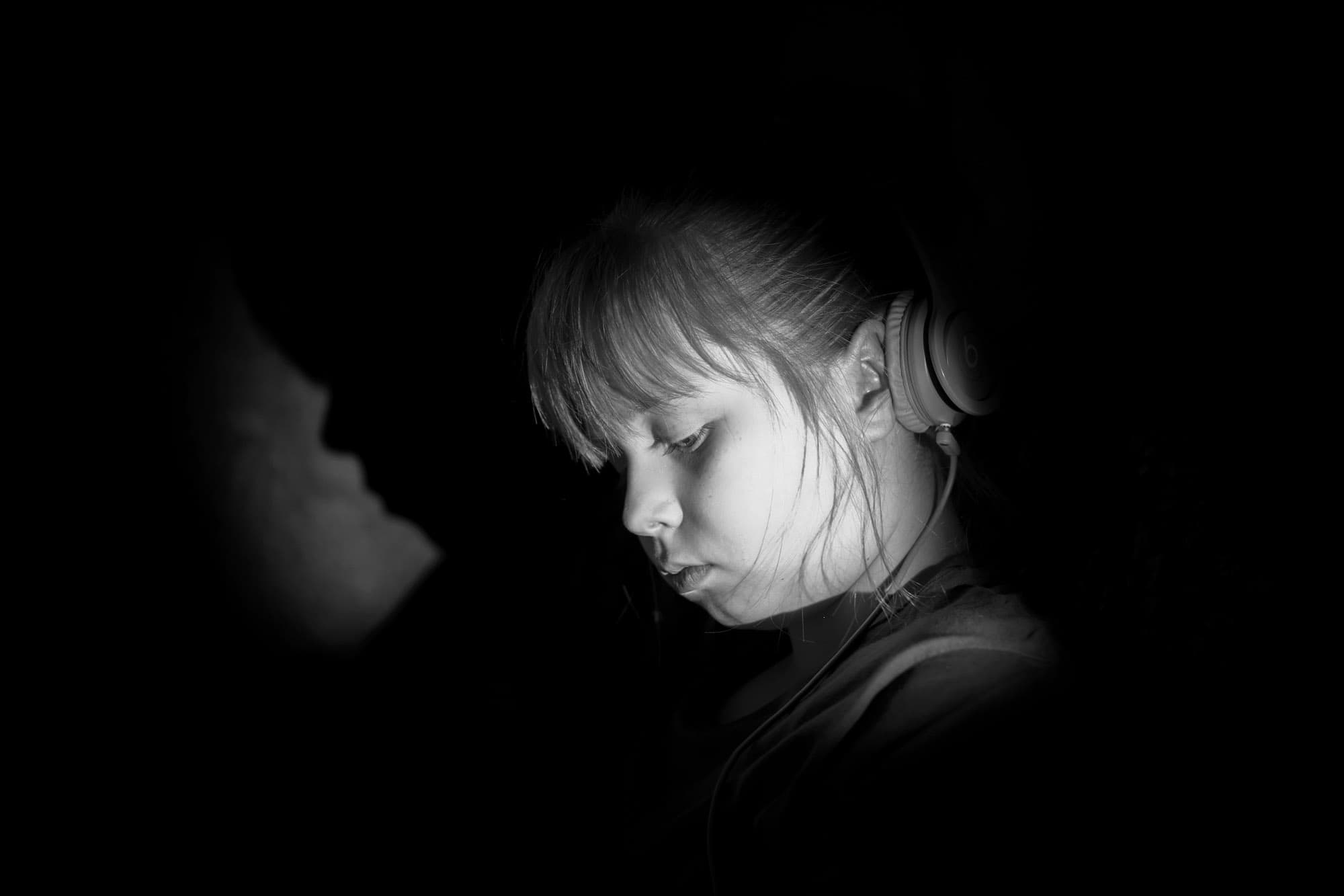 Этот портрет сделан в свете одного-единственного светодиодного осветителя со световым потоком около 300 лм (согласно заверениям производителя; мы не удосужились проверить). Цветовая температура света довольно высока (около 7000 K), поэтому, чтобы избежать возни с синевой в кадре, мы предпочли преобразовать изображение в черно-белое. К тому же цвет в этом примере — распоследнее дело; нас интересуют полутона. А вот с ними почти все в порядке.