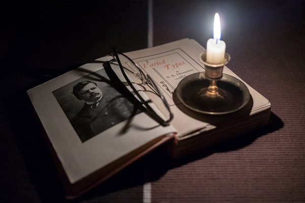 На снимке все получилось удачно: различим даже самый мелкий текст на титуле книги, узнаваема фотография автора, Г. К. Честертона, неплохо проработаны фактура фоновой ткани и структура пламени свечи.