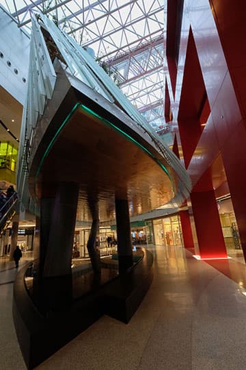 Сверху сквозь стеклянный колпак падает дневной свет, а снизу пространство освещено лампами накаливания. Однако кунштюк с раздельной установкой баланса белого для двух зон в одном кадре — это уже слишком. Доверившись камере и оптике, мы не прогадали: общее впечатление от снимка вполне хорошее.