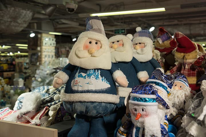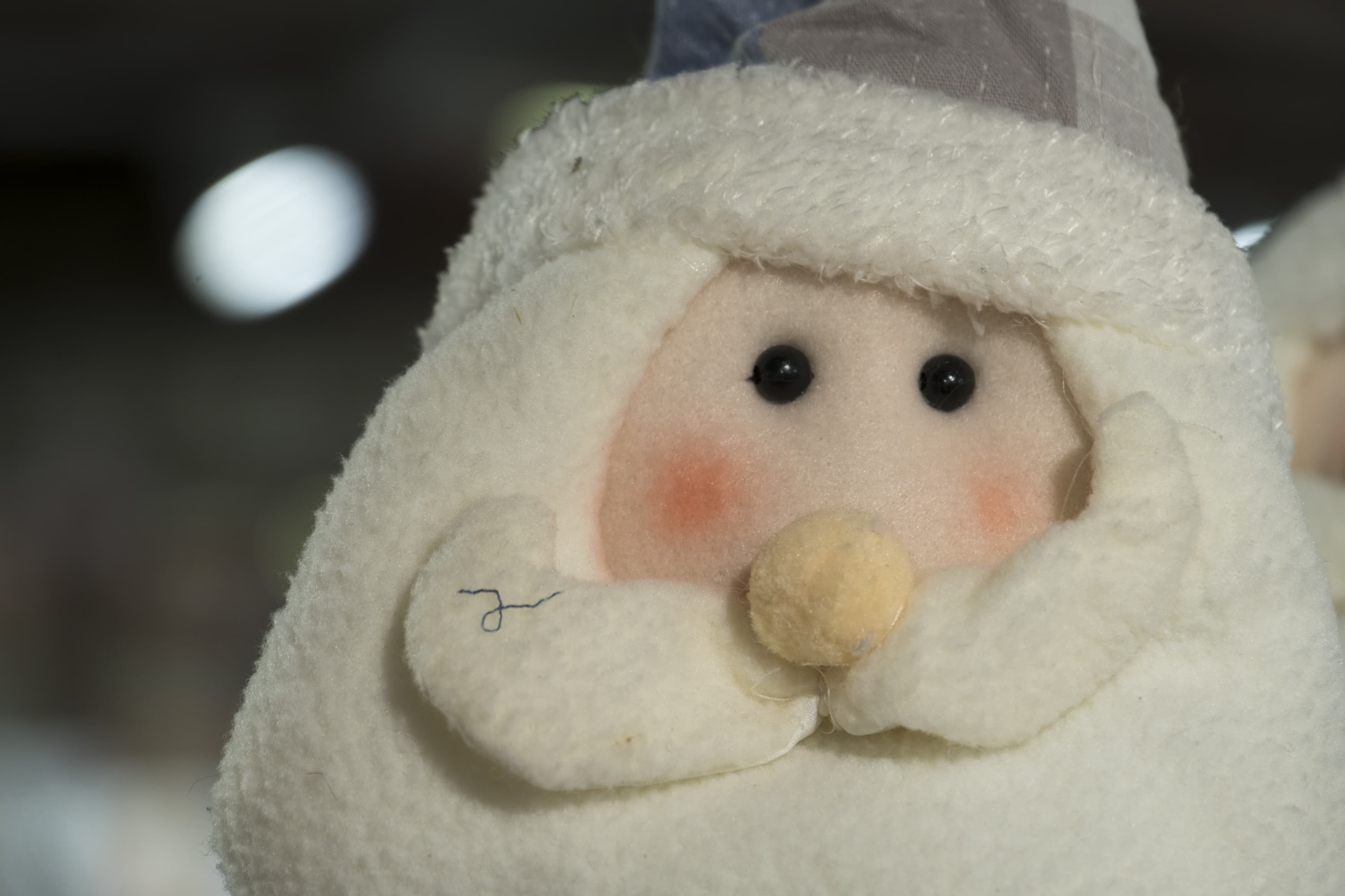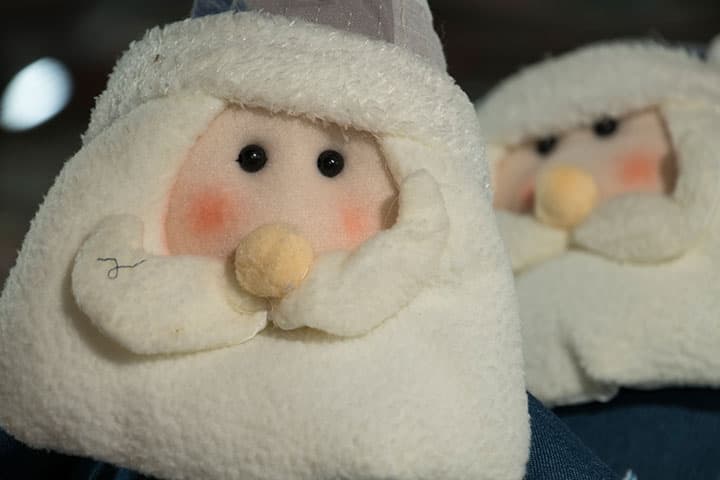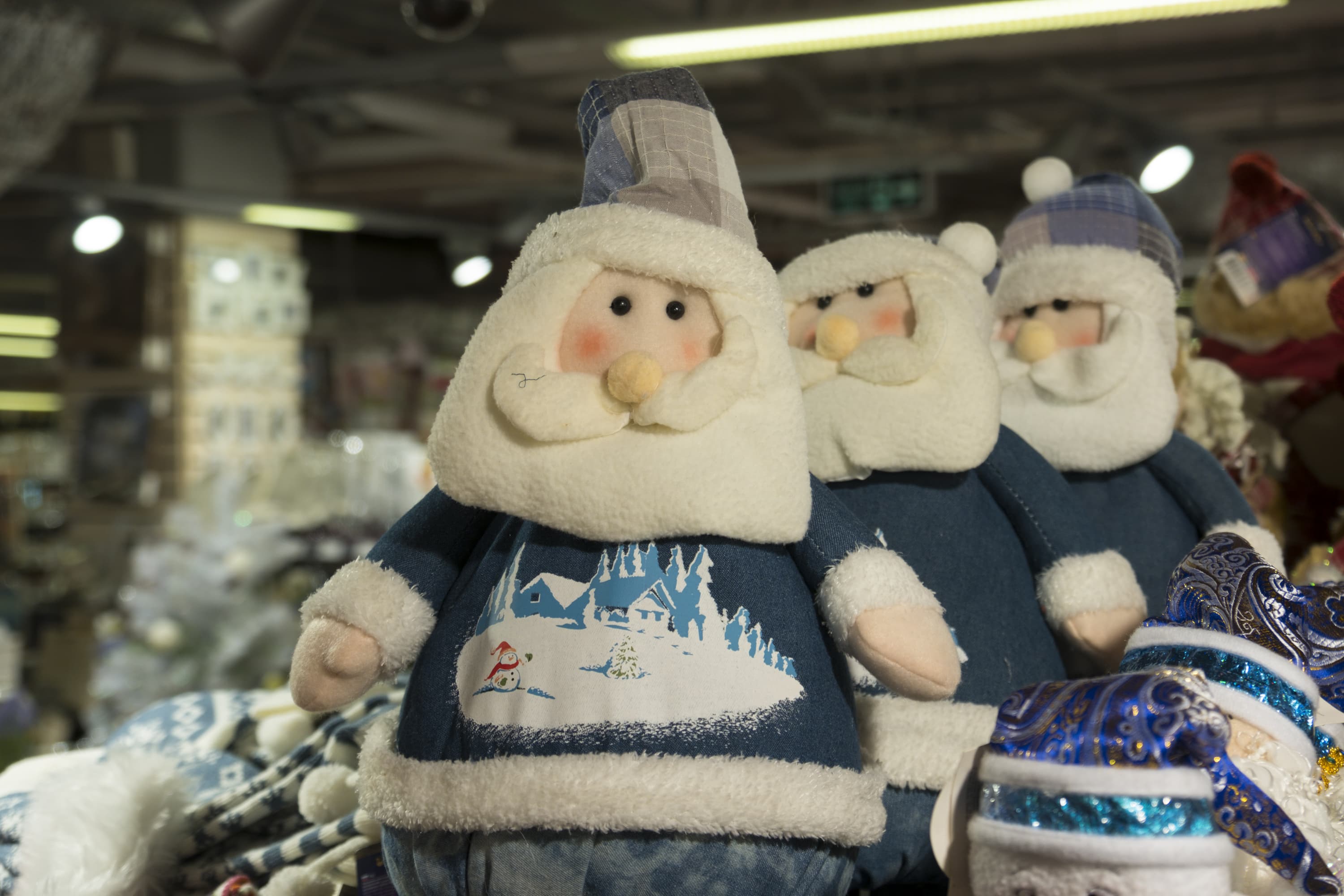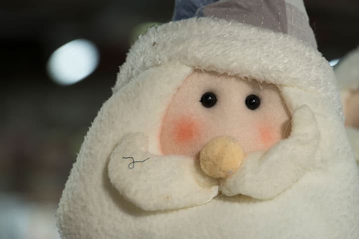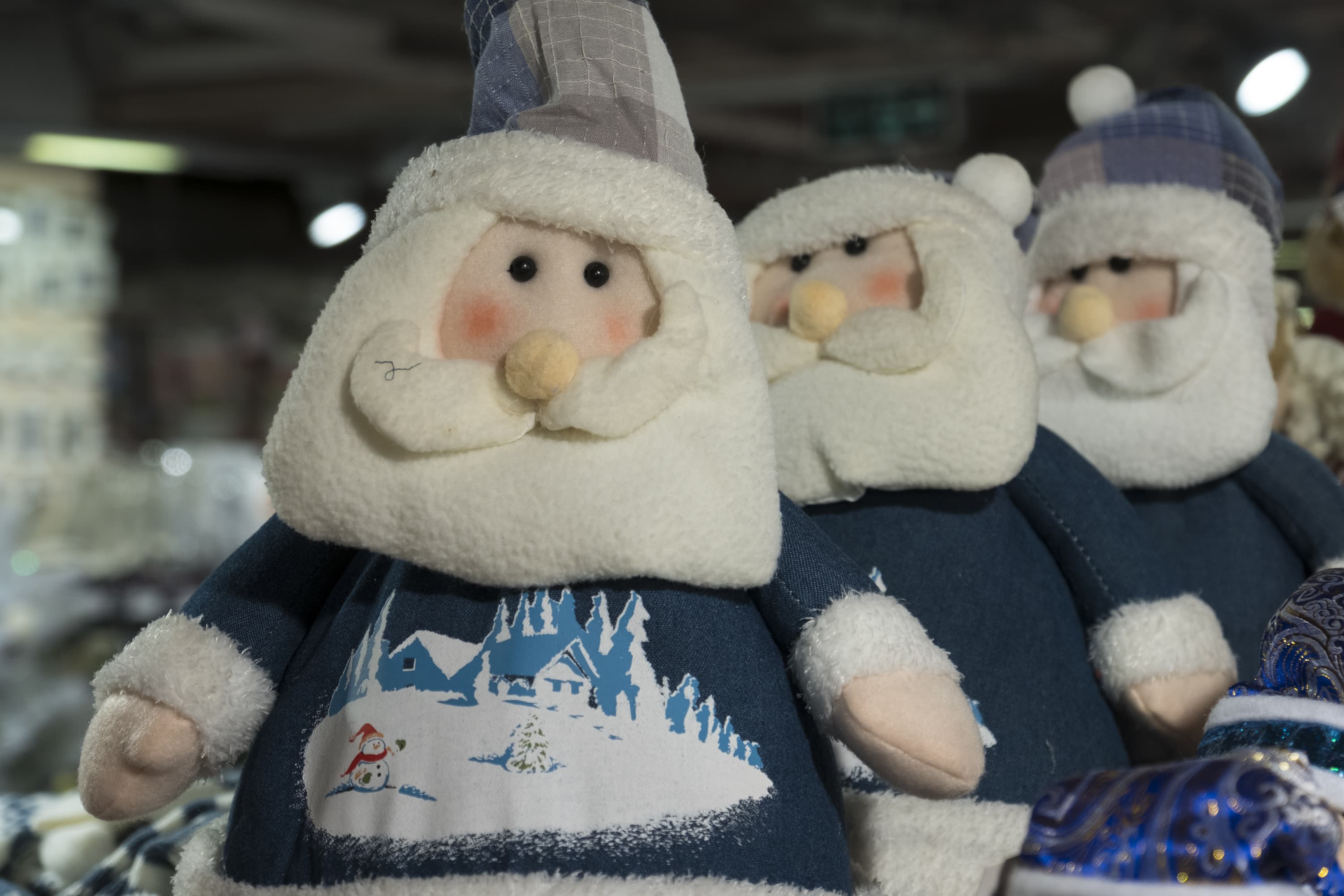 Во второй серии мы фокусировались на глазах левой куклы Деда Мороза. Здесь обратим внимание на два обстоятельства: баланс белого и проработку фактуры поверхности мягких игрушек.