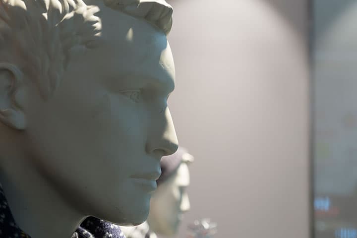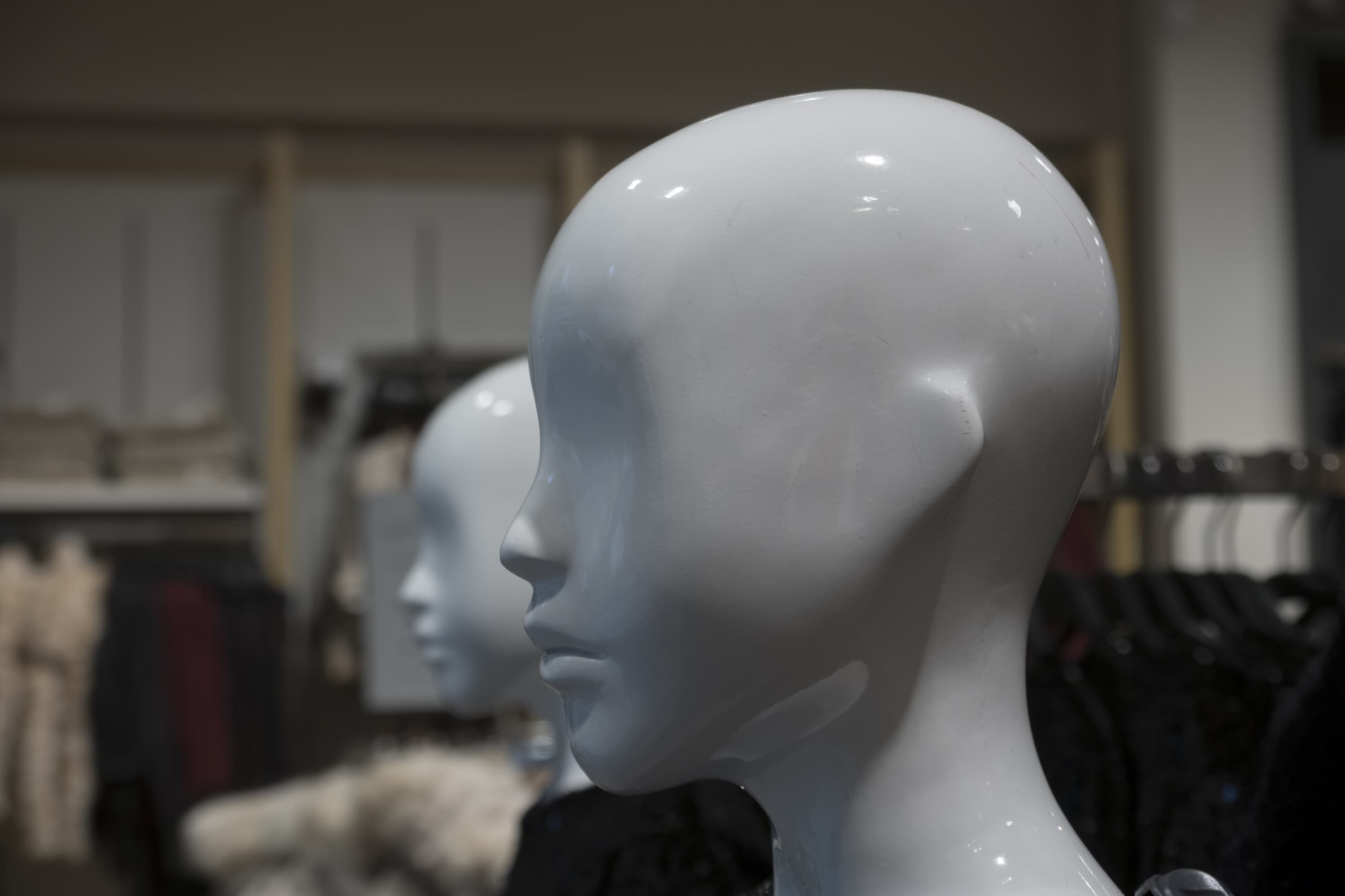 Неплохо получаются у нашего подопечного и цвета, близкие к оттенкам кожи человека, как у двух манекенов на этом снимке.