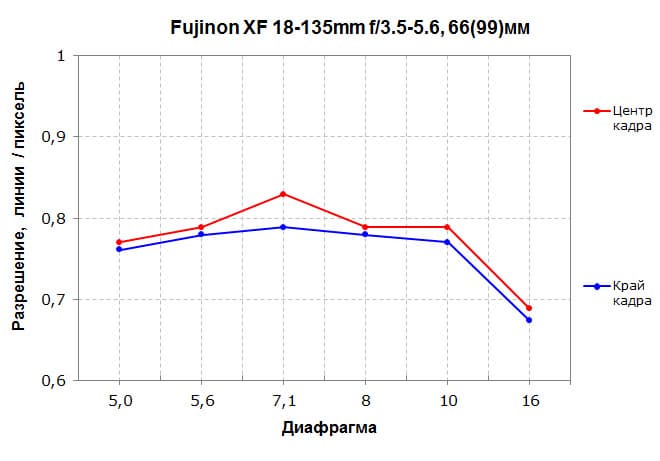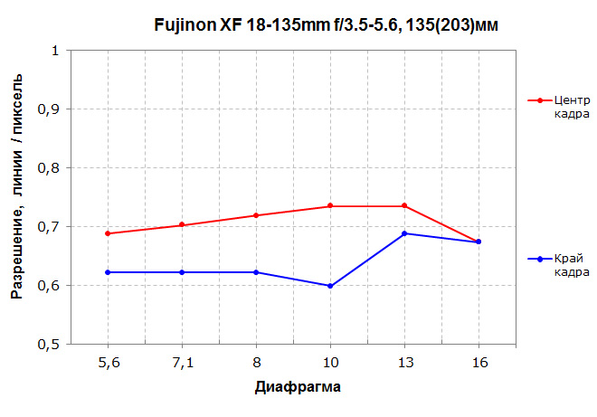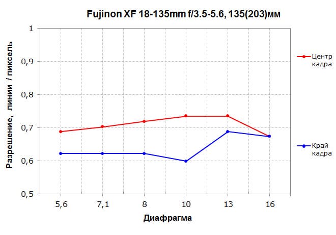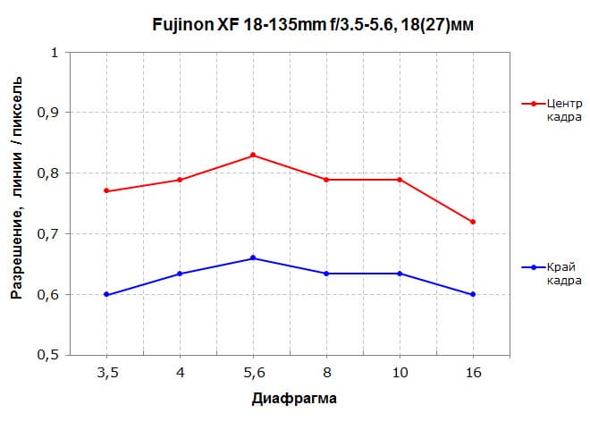 По мотивам проведенного анализа отметим, что резкость у Fujinon XF 18-135mm F3.5-5.6 R LM OIS WR в центре кадра во всем диапазоне фокусных расстояний вполне адекватная, что особенно важно для компактного и легкого гиперзума. Она снижается к периферии кадра, причем это особенно заметно на минимальных и максимальных фокусных, но в большинстве ситуаций с этим можно мириться.