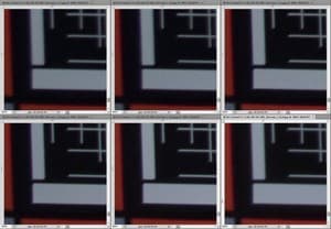 Во всем диапазоне фокусных расстояний и максимальном раскрытии на каждом из них видим, что резкость в центре приемлемая, но к периферии несколько понижается. Воспроизведение полутонов в широкоугольном положении несколько проигрывает картинке на средних и максимальных значениях трансфокации. Впрочем, это может быть вызвано более высоким контрастом изображения и достойно, наоборот, похвалы.