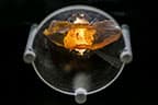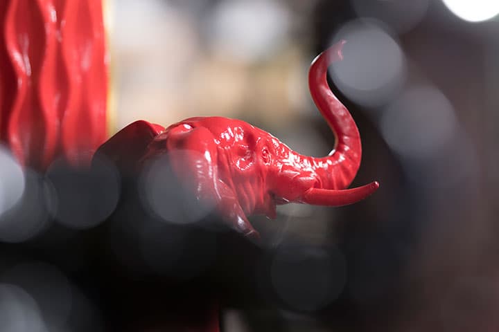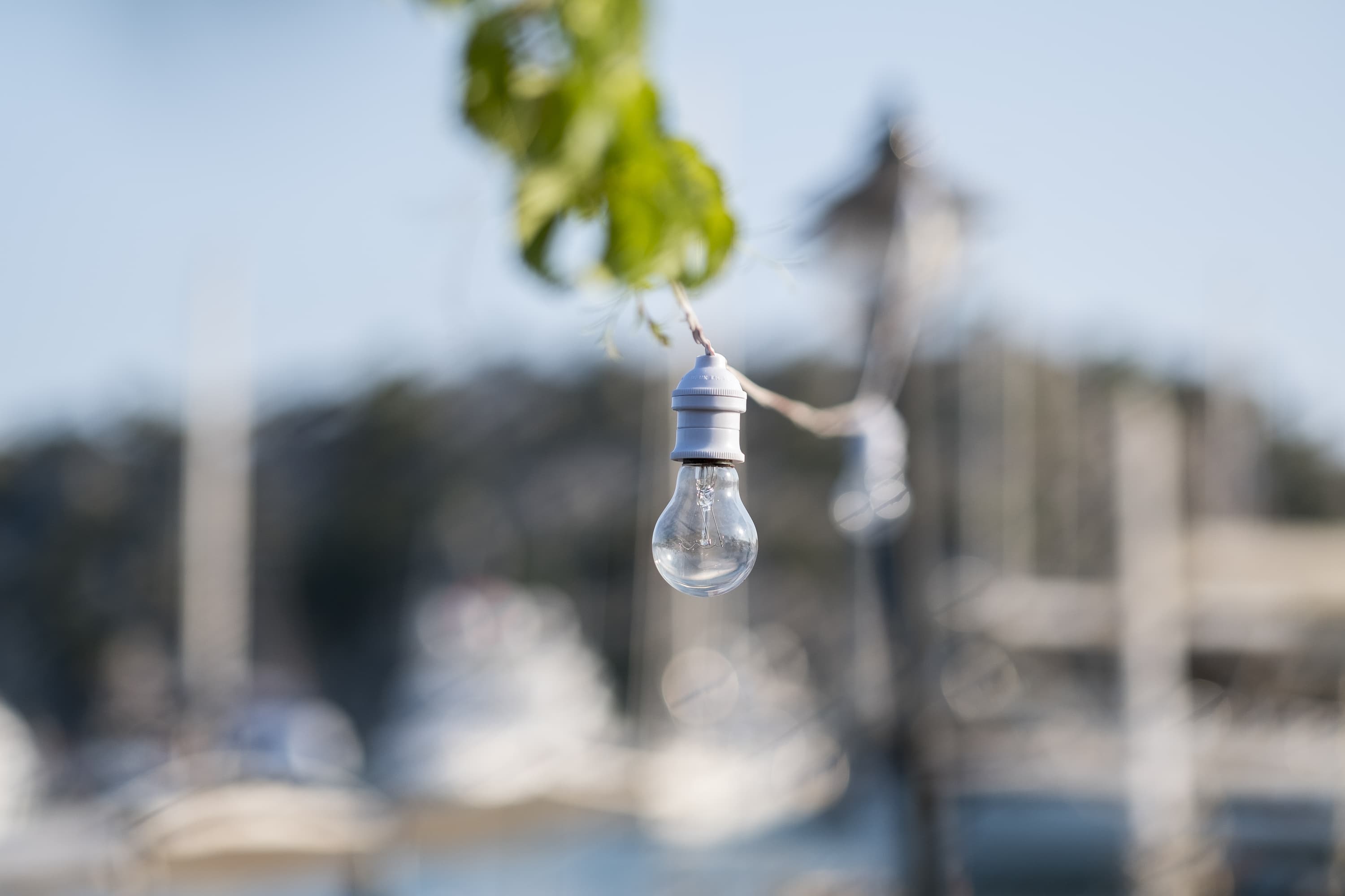 Лампа в зоне резкости отличается прекрасной детализацией. Видны не только нить накаливания, рифленые детали патрона и буквенная маркировка на нем, но и двойное отражение окружающей сцены на стекле колбы.