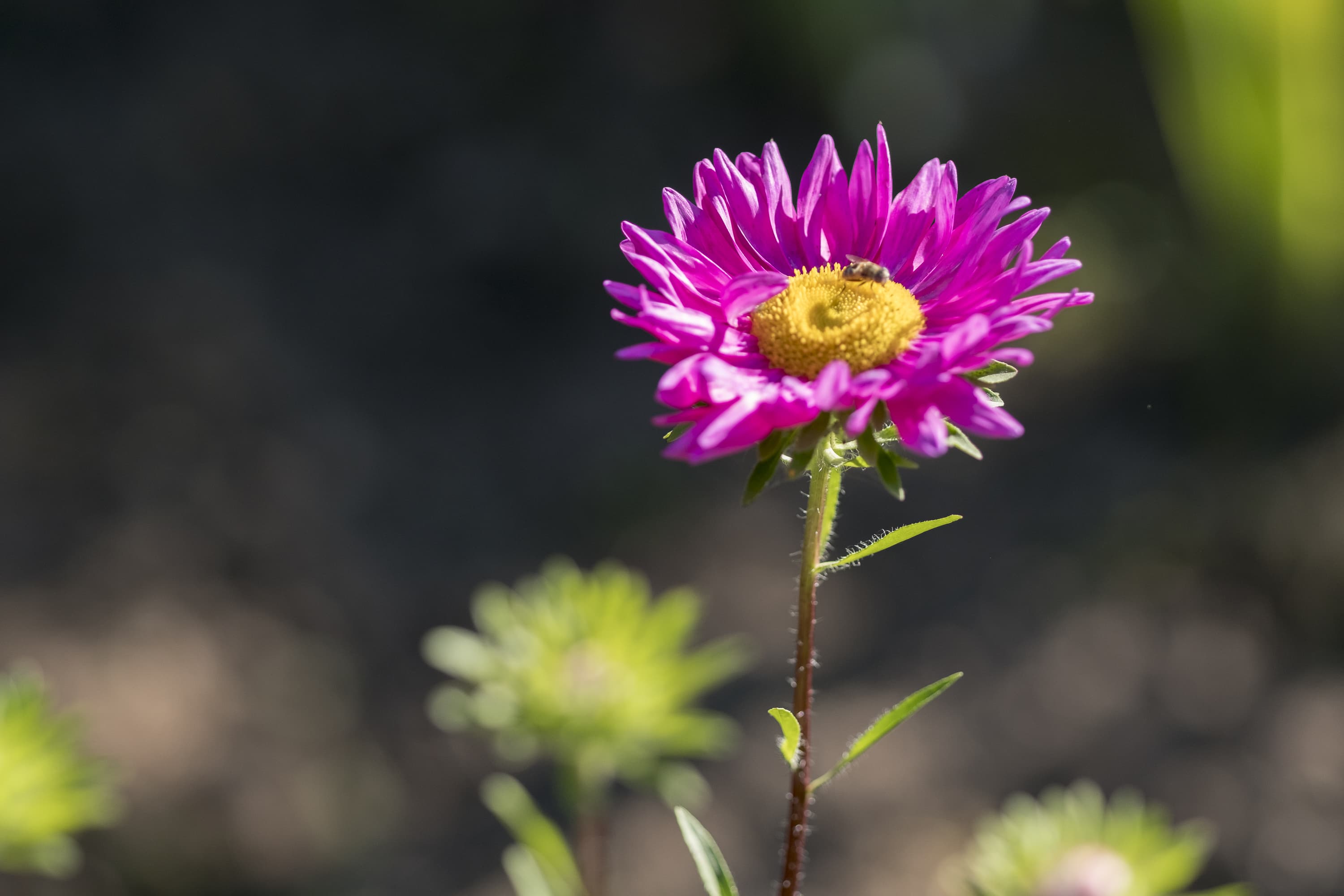 Это почти макро — правда, снятое с расстояния около 80 см. Пчелка, к сожалению, выпала из зоны резкости, поскольку неслабый ветер раскачивал цветы и было нелегко точно «попасть» в насекомое. Но это не помешает нам оценить цветопередачу. А суть вот в чем: сцена освещена ярким предвечерним солнцем. Цветовая температура такого света имеет явный крен в желтизну. Однако на фото мы видим лишь намек на время дня, а оттенки зелени и красная окраска лепестков не испорчены.