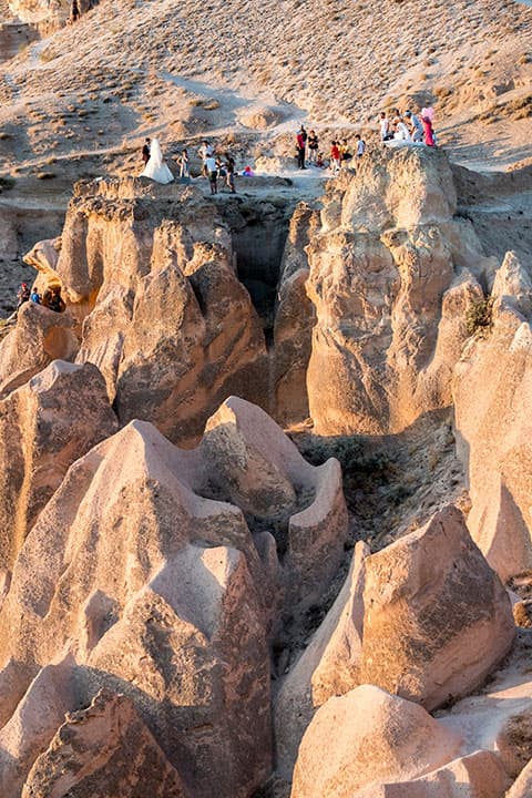 На этом снимке интересно оценить детализацию дальнего плана при съемке со значительного расстояния (около 150 м). Объектив продолжает радовать нас резкостью на полностью открытой диафрагме. Можно разглядеть не только выражение лиц людей и детали их одежды, но и фактуру поверхности камня, песка, травинки в желтых пучках и мелкие камешки на горных склонах.