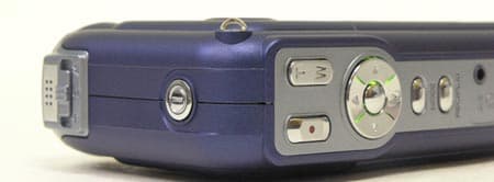 Качественный пластик (синий или красный металлик) останется без следов царапин даже после длительного использования без чехла. Края штампованных деталей качественно обработаны и подогнаны друг под друга. Корпус достаточно прочный, даже при очень сильном сдавливании не издаёт никаких скрипов. Качество сборки заслуживает пятёрки с плюсом. Имеет небольшие, даже миниатюрные, размеры (100×70×30 мм) и вес лишь 136 граммов. Экран расположен с левой стороны размером, 2 дюйма и поворачивается на довольно жёстком шарнире на 270 градусов. Но, к сожалению, камера с откинутым экраном самостоятельно стоять не может и заваливается на бок: съёмку можно производить только воспользовавшись штативом из комплекта.