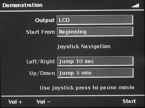 Меню прослушивания музыкальных записей | Меню просмотра видео. На экран телевизора можно вывести только фильм или фотографии. Меню и служебную информацию можно увидеть только на ЖК экране |